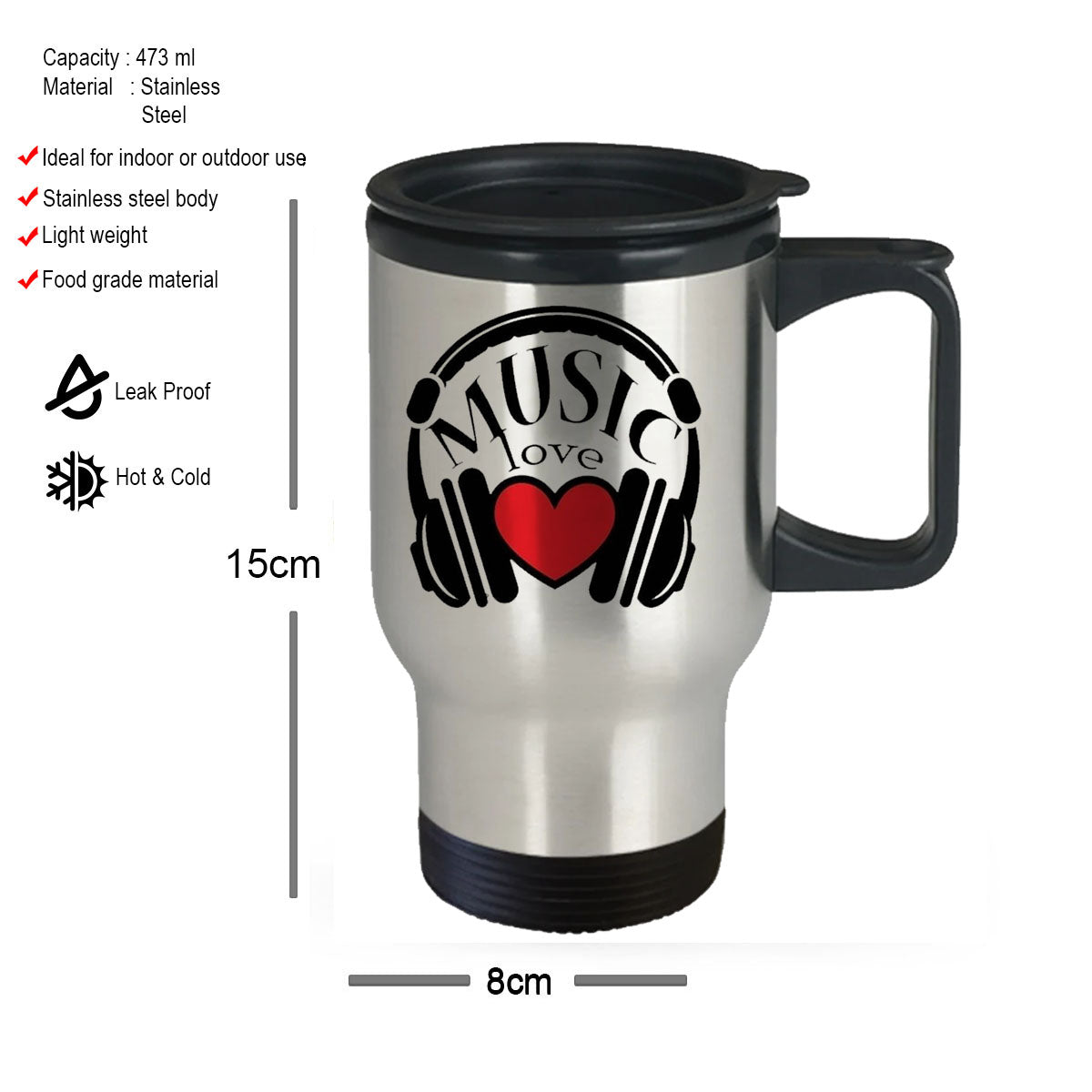 Chillaao Music Love Steel Travel Mug