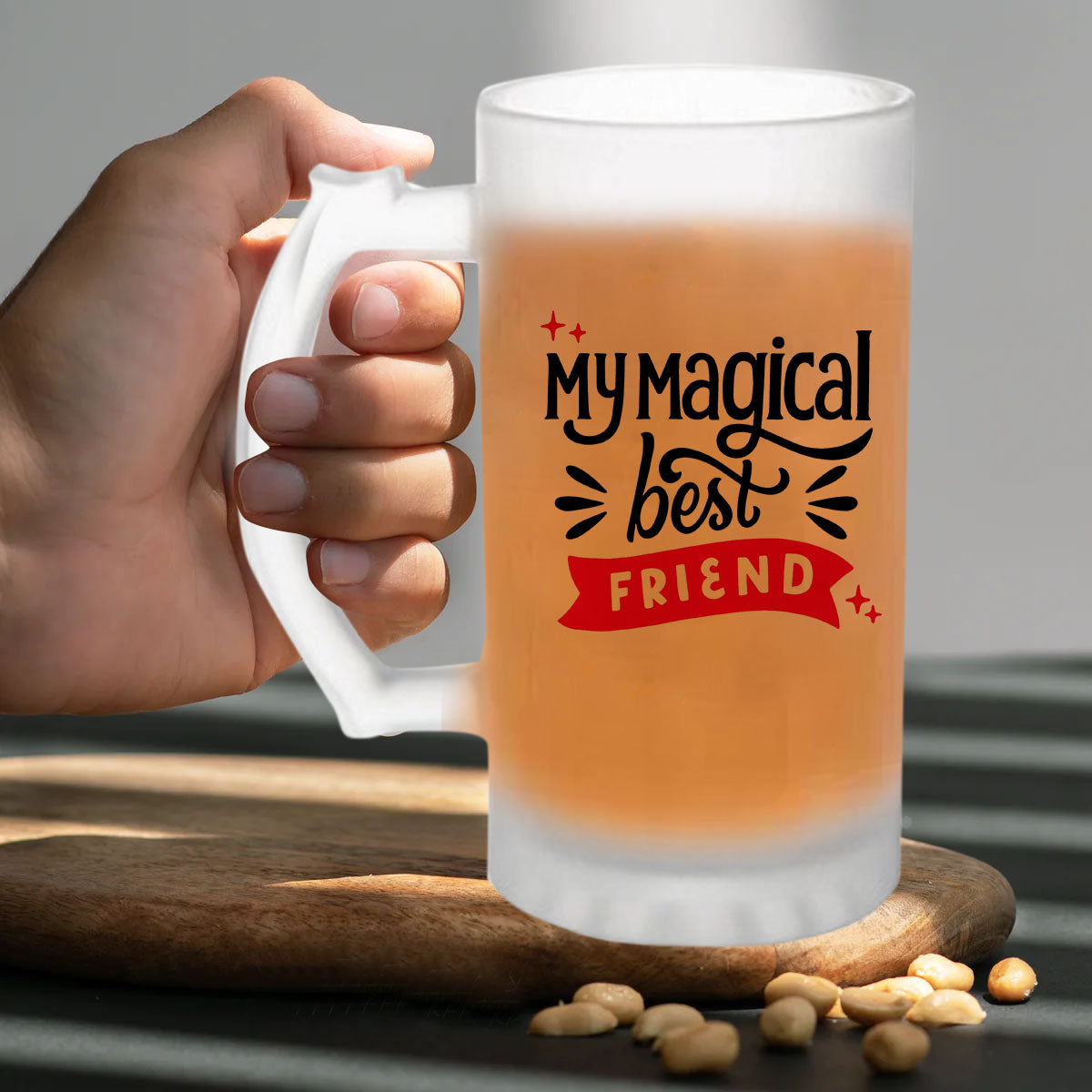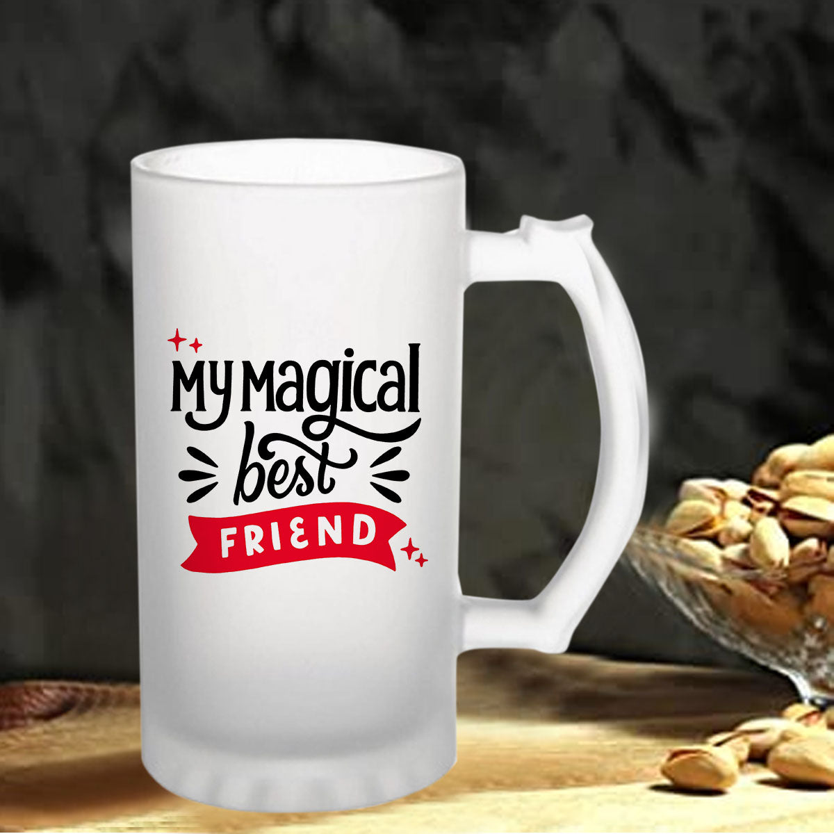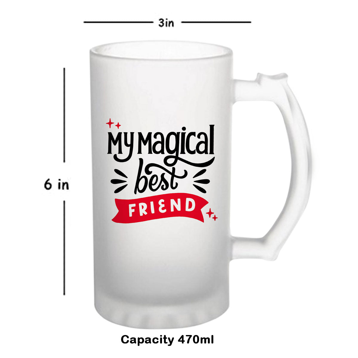 This Friendship Day, express your gratitude and love for your friend with this stunning frosted beer mug. It's a heartfelt gesture that encapsulates the joy of friendship and adds a touch of elegance to their life. Let them raise their glass and toast to the incredible bond you both share, celebrating the irreplaceable presence of a true friend."