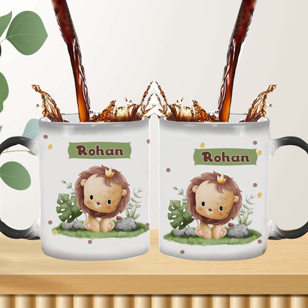 Chillaao Personalised cute baby lion sitting on the grass Magic Mug