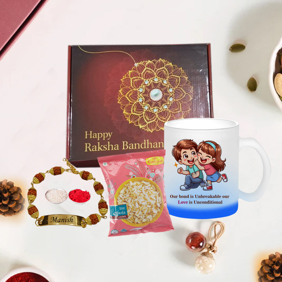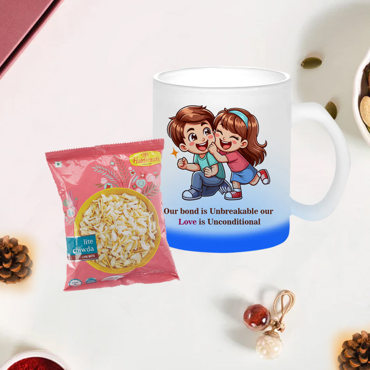 - The combo set for the Rakhi hamper includes a Haldiram Salty Diet chivda Coffee Mug Make Specials For your Brother & Sister Also