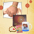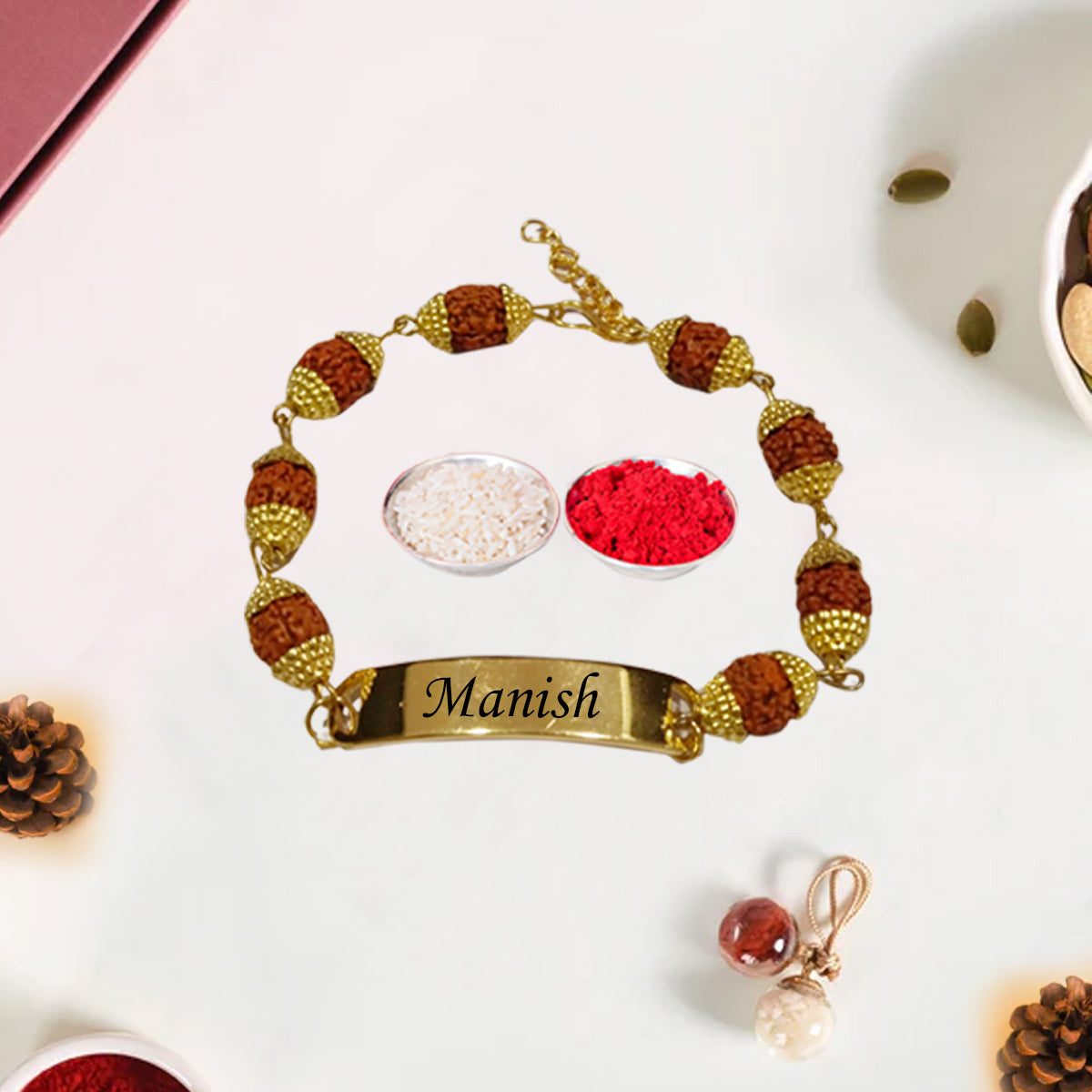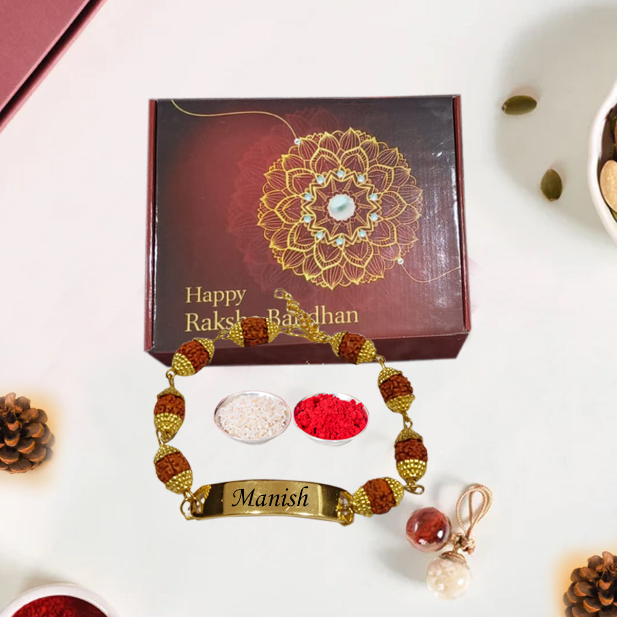 - Rudraksha Rakhi: The centerpiece of the hamper is usually a beautiful Rakhi, which is a decorative thread that symbolizes the bond of love between siblings. Rakhis come in various designs, materials, and styles, catering to different preferences.