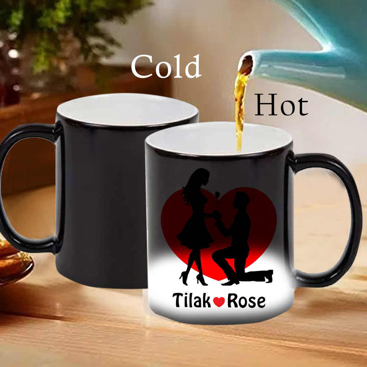 Magical Transformation: At first glance, this mug appears to be a standard, sleek black mug. However, when you pour in a hot liquid of your choice, like coffee, tea, or hot chocolate, its magical transformation takes place before your eyes! Witness the captivating moment as the heat-sensitive coating reacts to the warmth, revealing the customized design that lies beneath the surface.