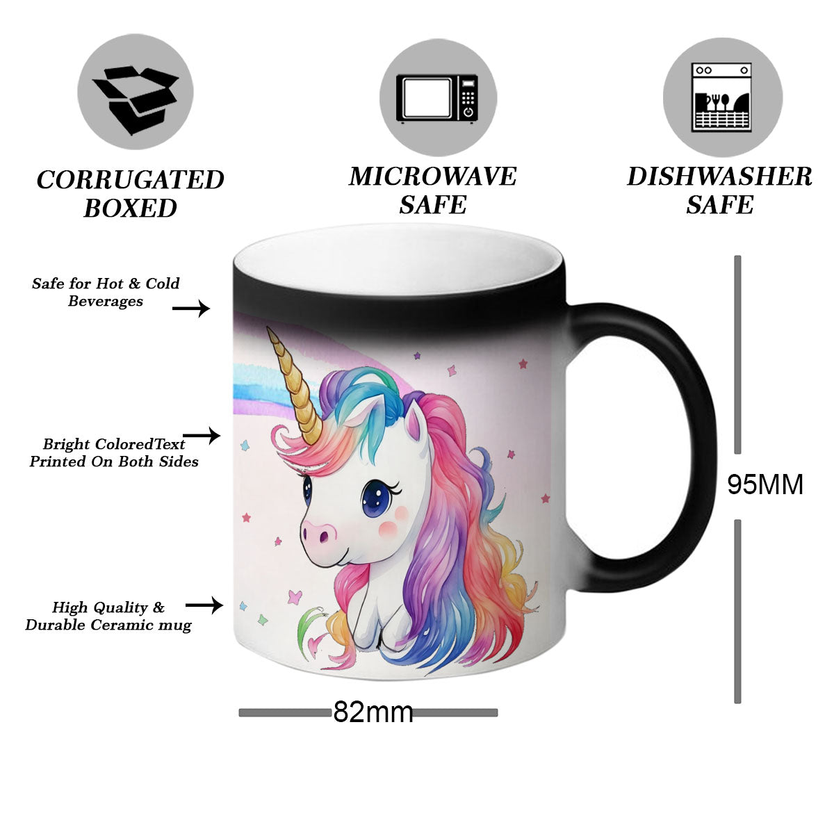 Magical Transformation: At first glance, this mug appears to be a standard, sleek black mug. However, when you pour in a hot liquid of your choice, like coffee, tea, or hot chocolate, its magical transformation takes place before your eyes! Witness the captivating moment as the heat-sensitive coating reacts to the warmth, revealing the customized design that lies beneath the surface.
