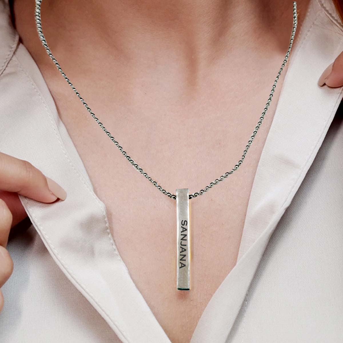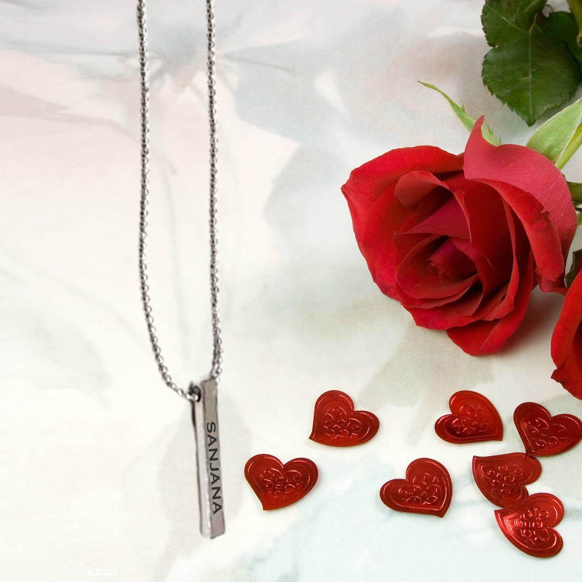 Chillaao Personalized Silver Bar Pendant with chain for Boys and Girls Silver Brass Pendant