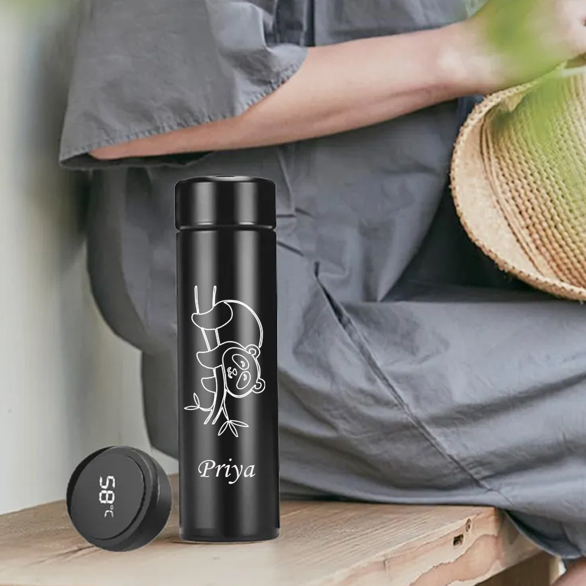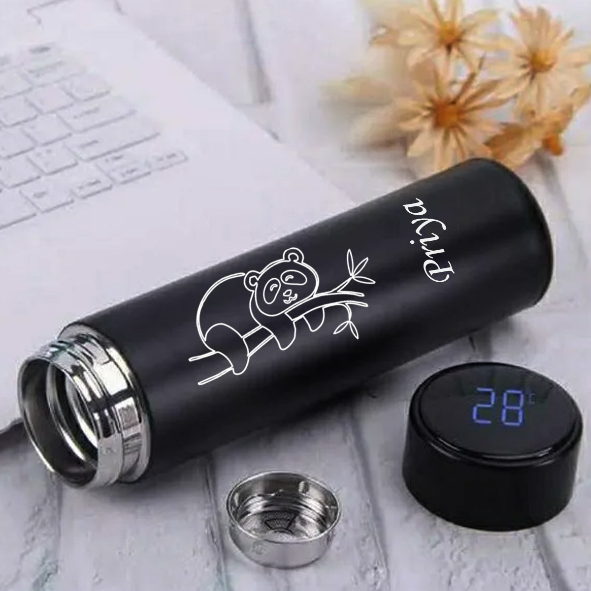 Chillaao Personalized Panda Cartoon Temperature bottle ( Black )