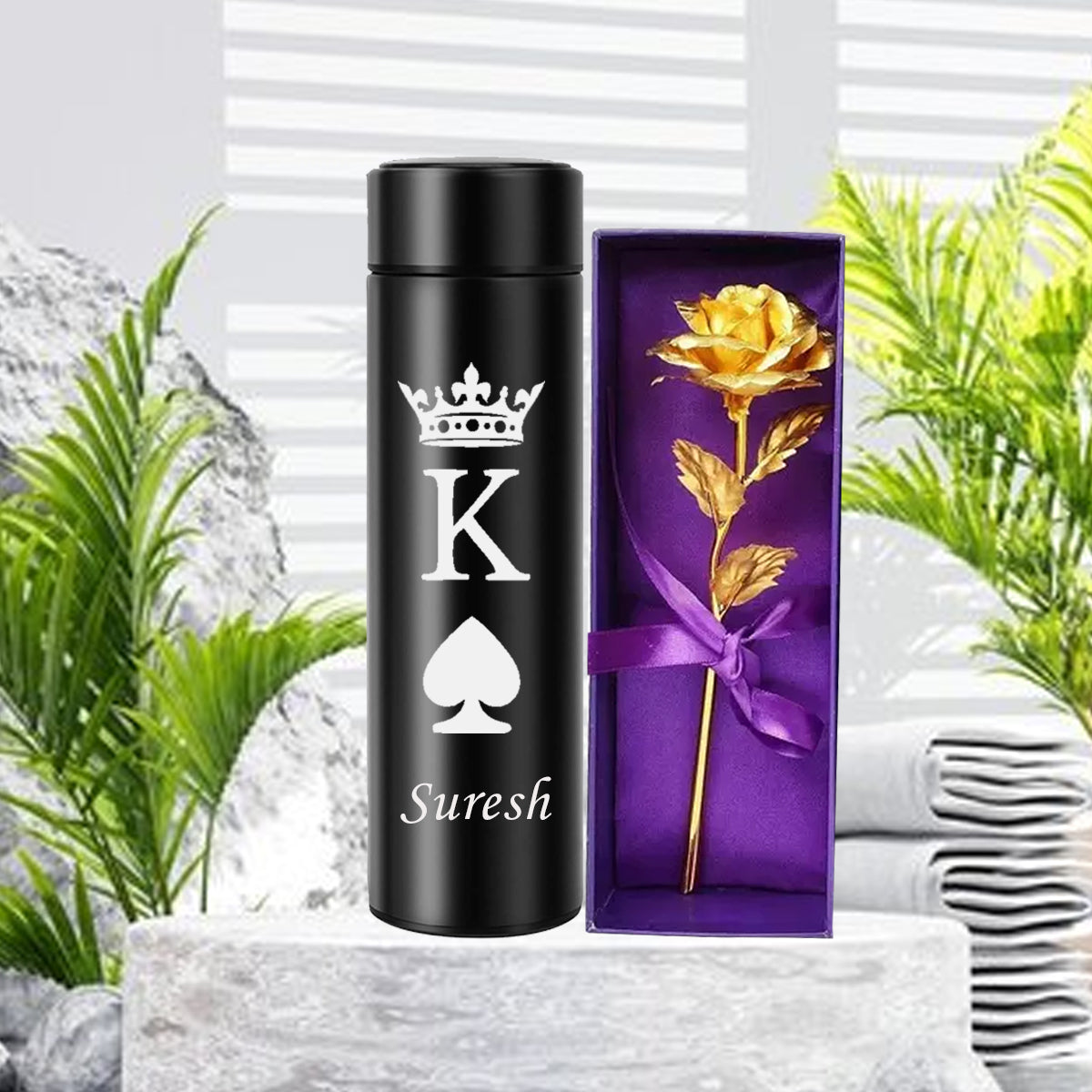 Chillaao Personalized Temperature Bottle Black & Golden Rose Combo
