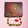 - Rudraksha Rakhi: The centerpiece of the hamper is usually a beautiful Rakhi, which is a decorative thread that symbolizes the bond of love between siblings. Rakhis come in various designs, materials, and styles, catering to different preferences.