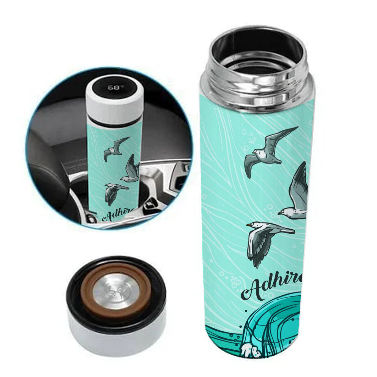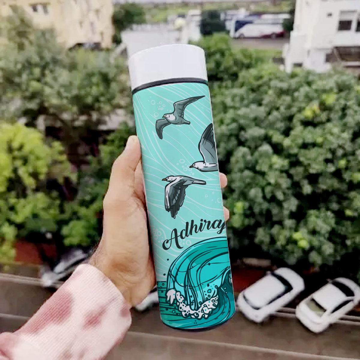 Chillaao Seagull Wave Blue Temperature Bottle White