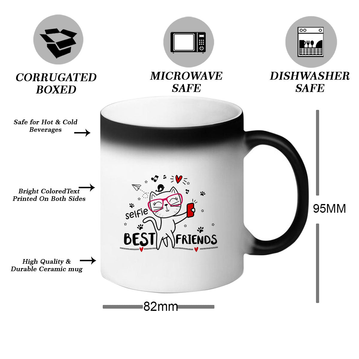 The best part is that the magic mug can be used repeatedly. Once the mug cools down, the design fades away, and it returns to its original black appearance. This means your friend can experience the magic over and over again, each time they use the mug.
