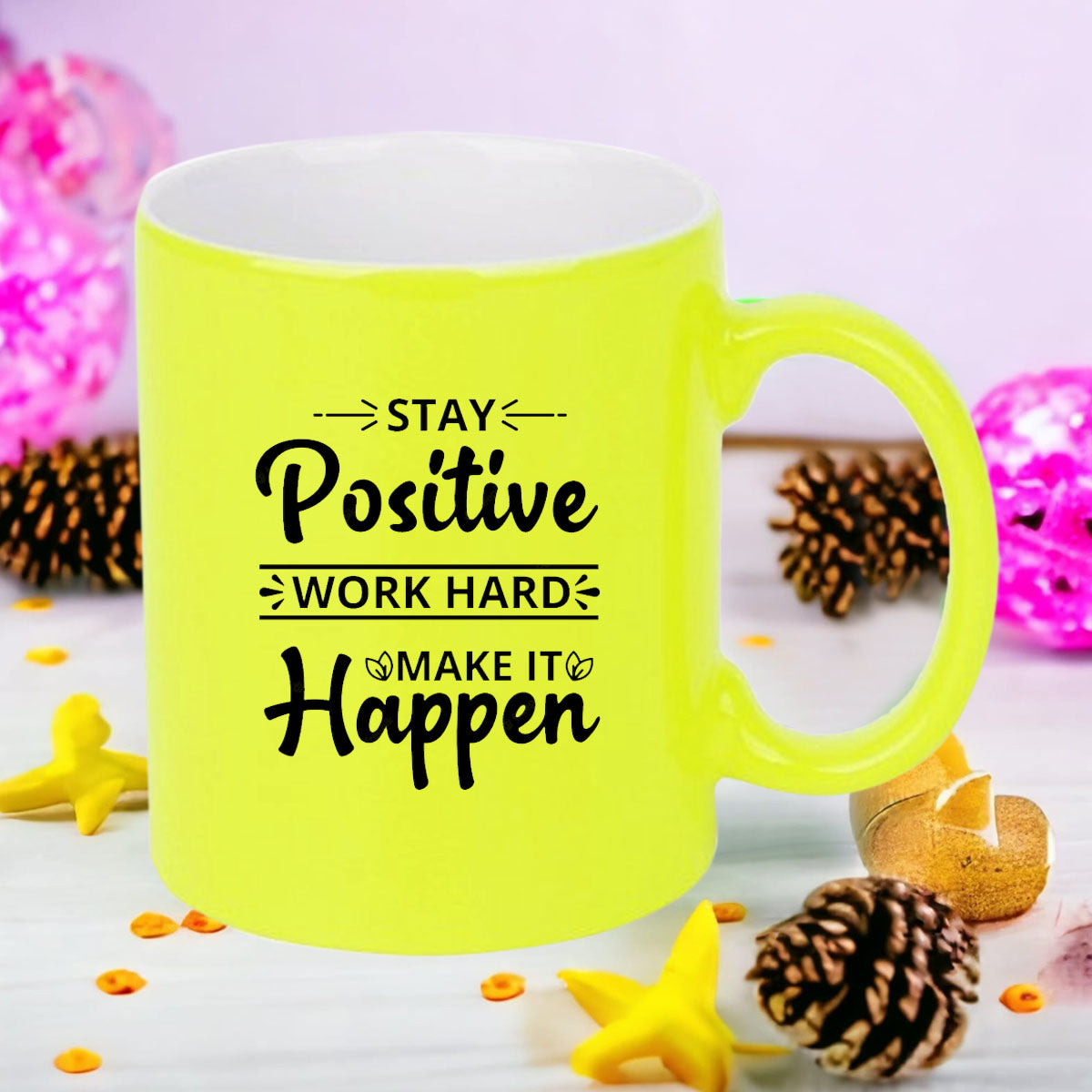 Chillaao Stay positive neon Yellow mug