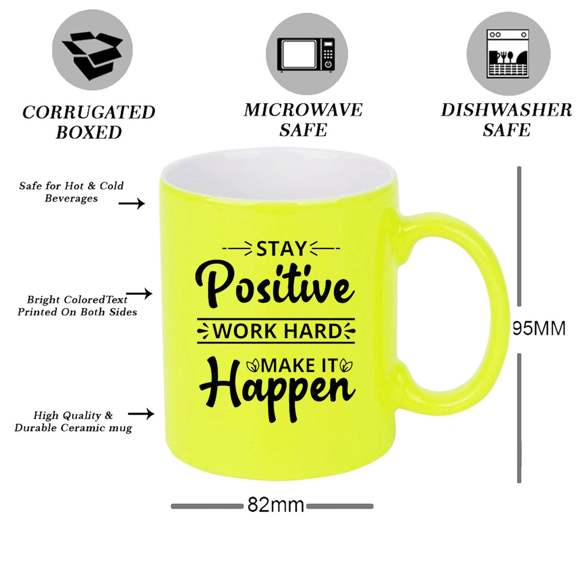 “Isn't it amazing how the world begins to change through the eyes of a cup of coffee”, why not to change it with a better start. Chill-aao.com let you shift from the regular coffee mugs to the newly introduced collection of Neon color mugs. The bright radiant colors are an absolute eye-catcher. The unique, quirky and funny prints guarantee to bring smile to your loved ones. Gift it to your friends, mom, dad, brother, sister, grandfather, grandmother, colleagues, cousins, girlfriend, boyfriend. Caters to all the important occasions of your life like birthdays, anniversaries, special days like friendship day, mother’s day, father’s day, valentine’s day, also can be gifted as a return gift. The mugs are made of white hard ceramic and are designed using the sublimation technology with the finest quality ecofriendly inks. The prints are scratch resistant and do not fade or come out with time and use. The size of the mug is perfect to accommodate a perfect amount of tea/coffee to start your day with. The product is printed against your order. The actual print may vary.