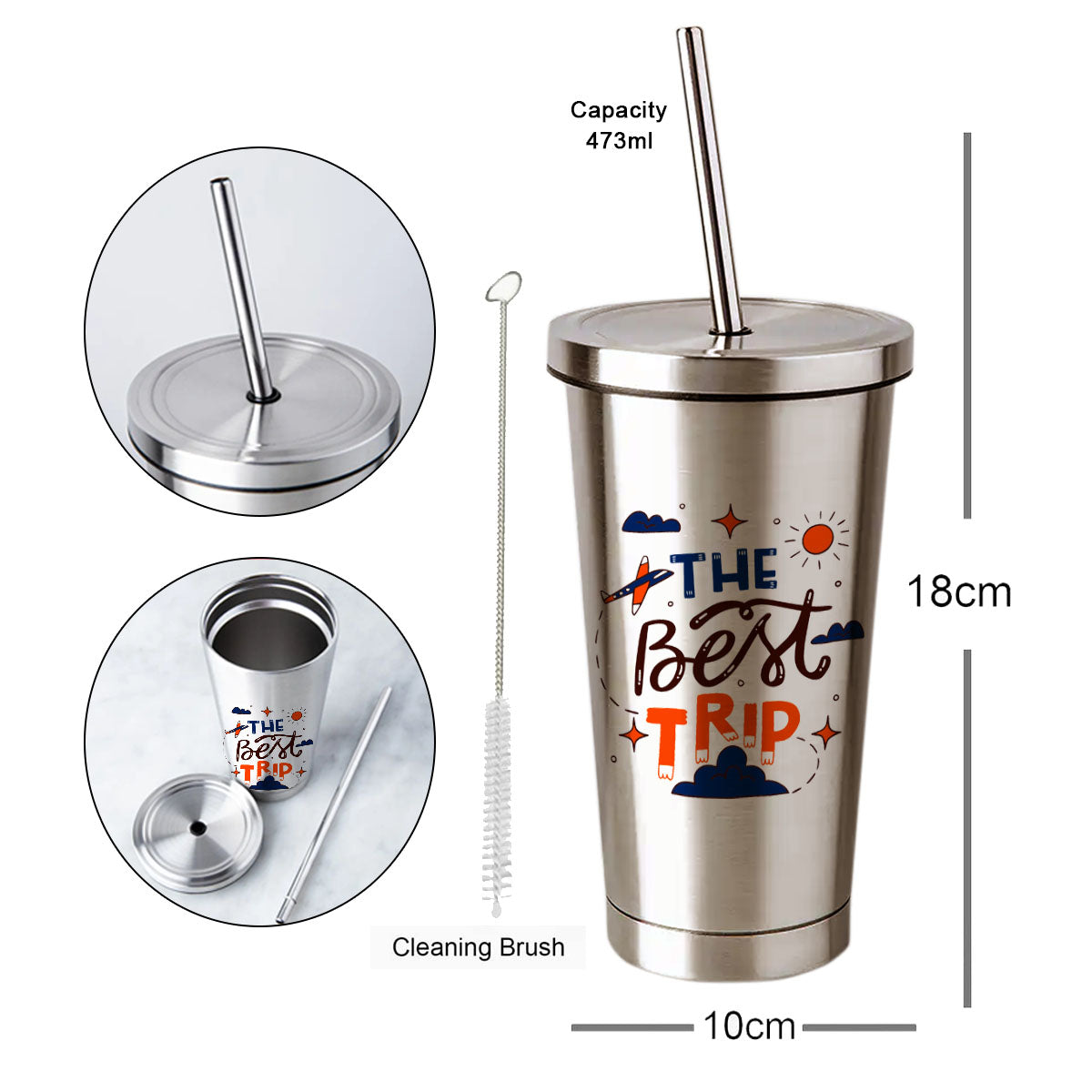 We at Chill-aao.com makes your life easy with our extremely stylish range of steel Steel Tumblers. Don’t have the time to sit and enjoy your favorite drink? Just carry it with you wherever you travel. Let’s make it a part of our modern lifestyle. Comes with a steel lid with straw hole and a steel straw to protect your drink from spilling and leaking. The unique, quirky and funny prints guarantee to bring smile to your loved ones. Gift it to your friends, mom, dad, brother, sister, colleagues, cousins, girlfriend, boyfriend. Caters to all the important occasions of your life like birthdays, anniversaries, special days like friendship day, mother’s day, father’s day, valentine’s day, also can be gifted as a return gift. The Steel Tumblers are made of good quality stainless steel and are designed using the sublimation technology with the finest quality ecofriendly inks. The prints are scratch resistant and do not fade or come out with time and use. The product is printed against your order. The actual print may vary a bit.