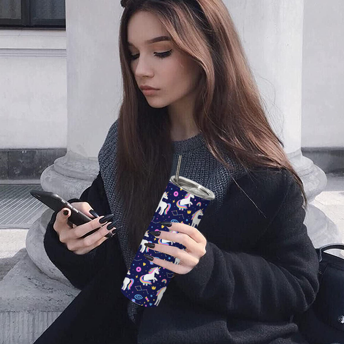 Chillaao unicorn pattern skinny tumblers