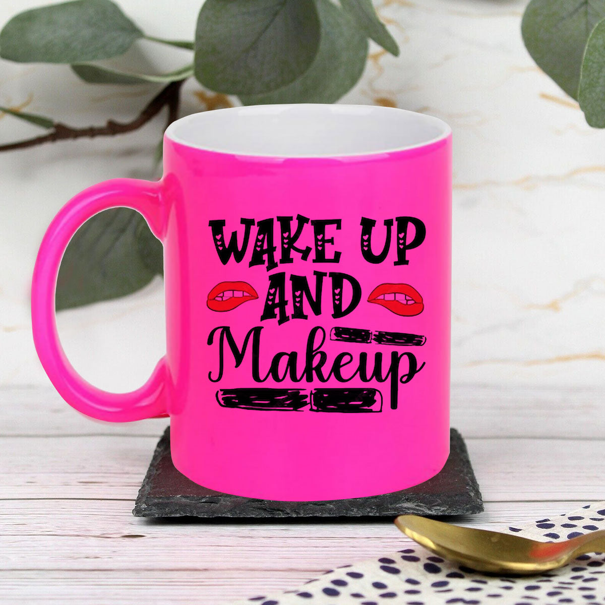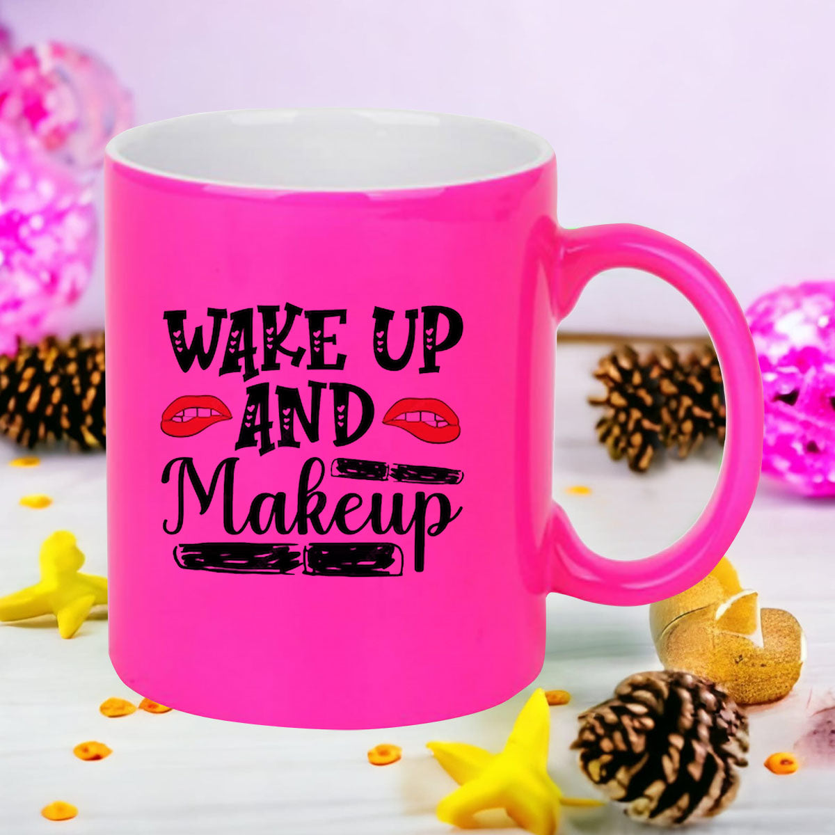 Chillaao Wake up and make up neon Pink mug