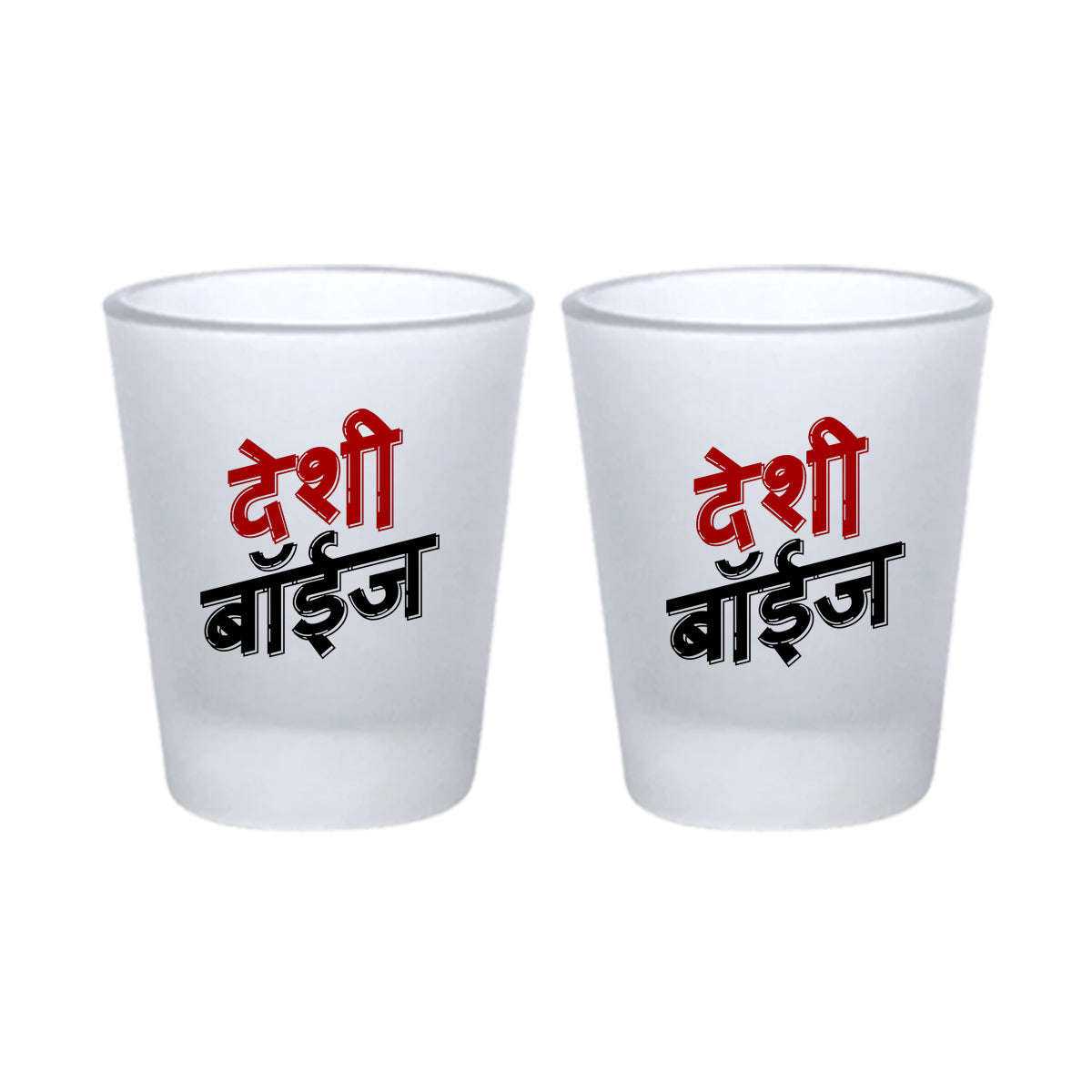 Chillaao -Dessi Boys Frosted Shot Glass - Set Of 2 Turn every party into a full-on vibe with this fun and quirky Dessi Boys Funny Quote Inspired by Mumbai’s tapori style, this glass adds a desi swag to your drinking moments. Made from high-quality glass with a bold and eye-catching print, it’s perfect for house parties, celebrations, or gifting to friends who love masti and good times.