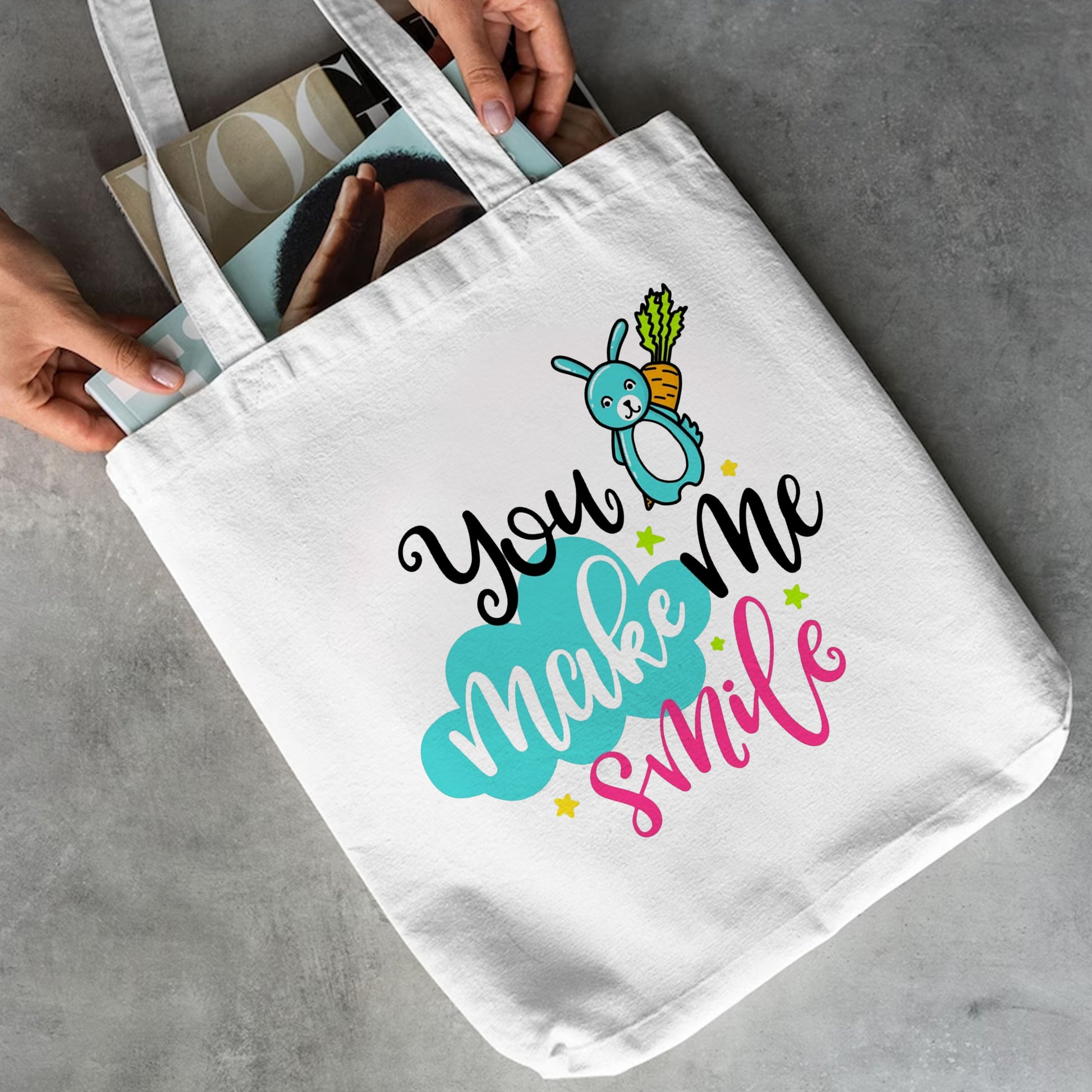 Chillaao You make me smile tote bag