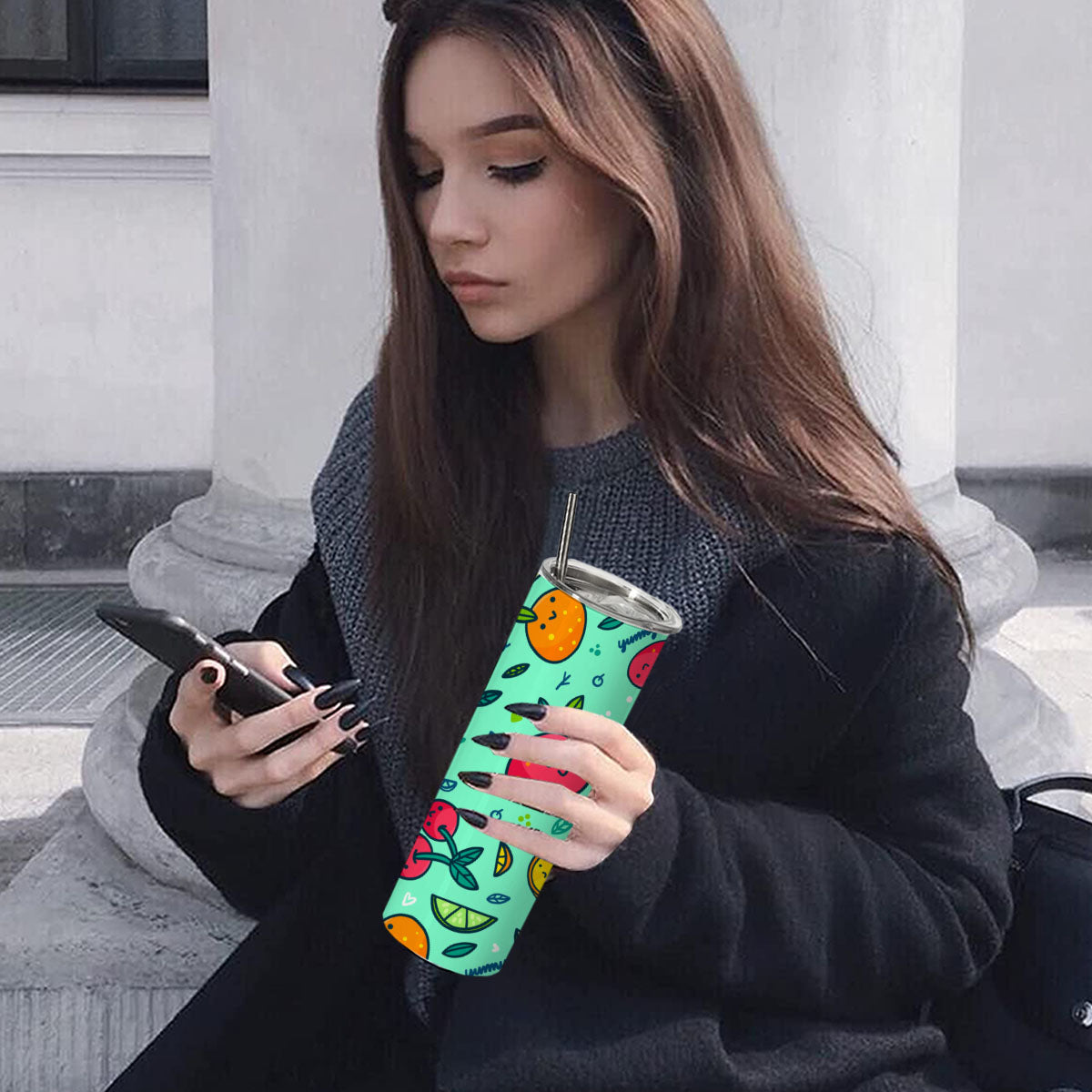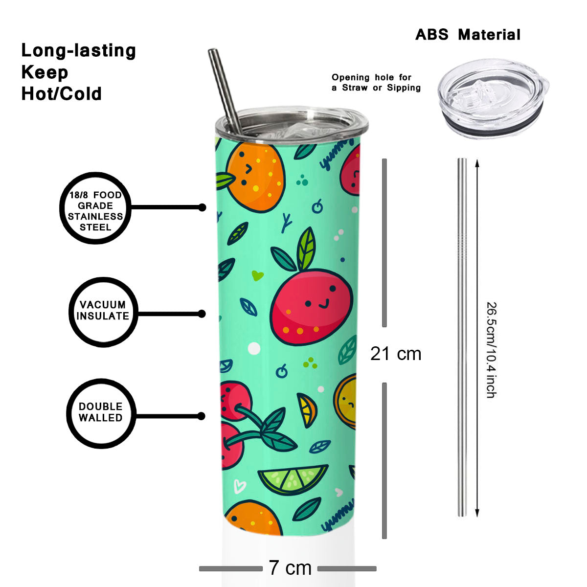 Unleash your style with our newly introduced Skinny tumbler. The sleek slim shape makes the bottle a star in itself. Double walled construction provides insulation to all your hot and cold liquids. The push on lid is attached by a rubber gasket making it both secure and easy to put on. Also allows you to sip directly or use the included steel straw accompanied by a straw cleaner. This tumbler is extremely versatile for any occasions and fits your interest. Use it to travel, to outdoor events and sports activities, personalize them for party favors and gifts, or just for everyday use. The unique, quirky and funny prints guarantee to bring smile to your loved ones. Gift it to your friends, mom, dad, brother, sister, colleagues, cousins, boyfriend, girlfriend. 100% stainless steel yet light weight. Eco-friendly and are designed using the sublimation technology with the finest quality inks. The prints are scratch resistant and do not fade or come out with time and use. The product is printed against your order. The actual print may vary a bit.