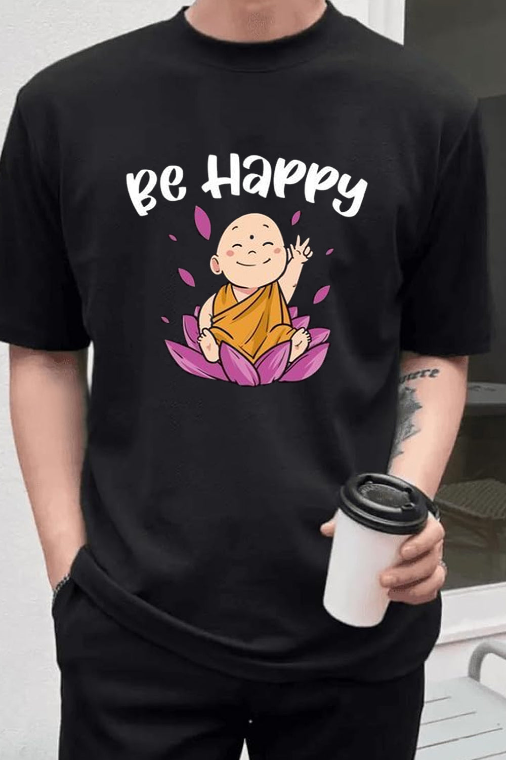Chillaao Be Happy Buddha Oversize T- Shirt