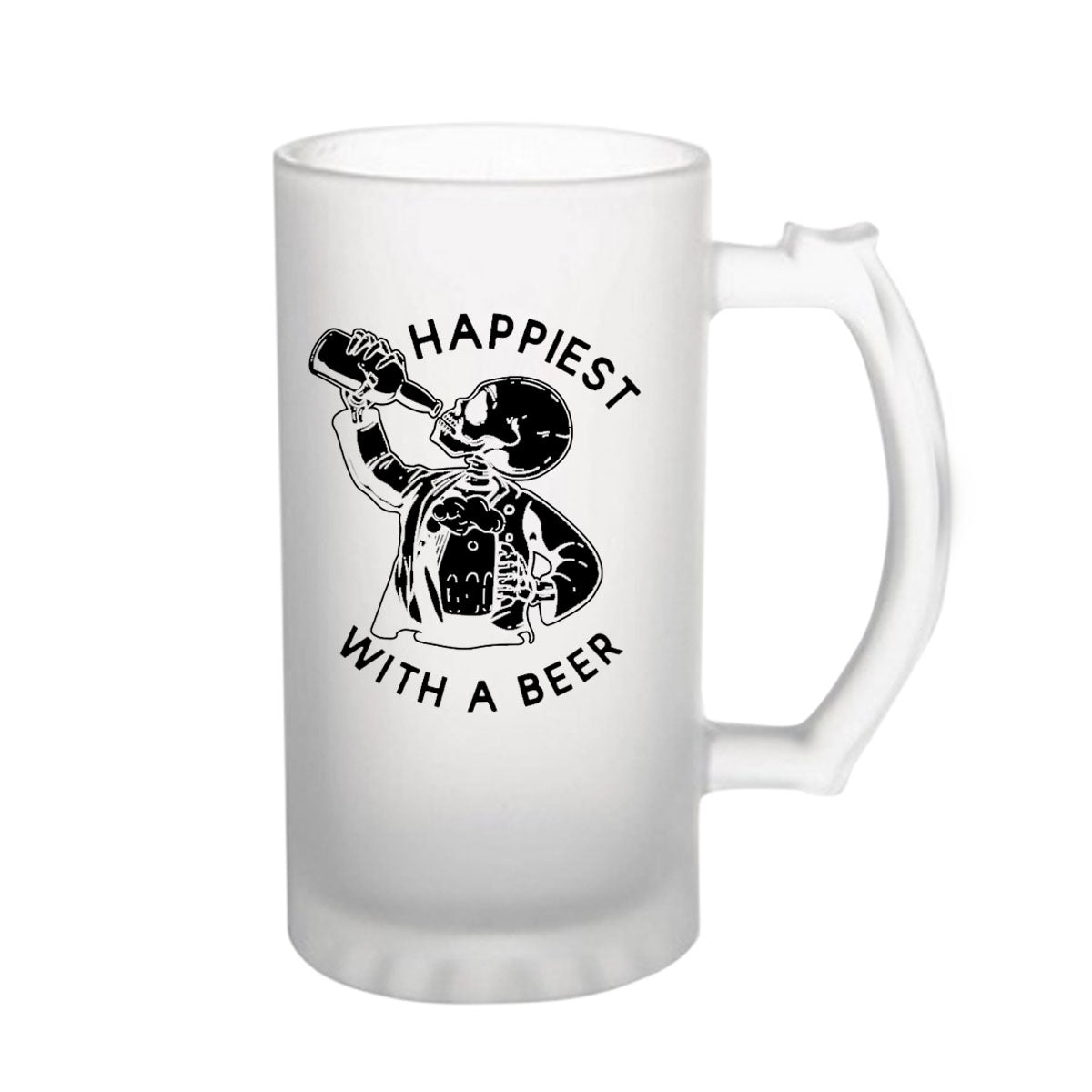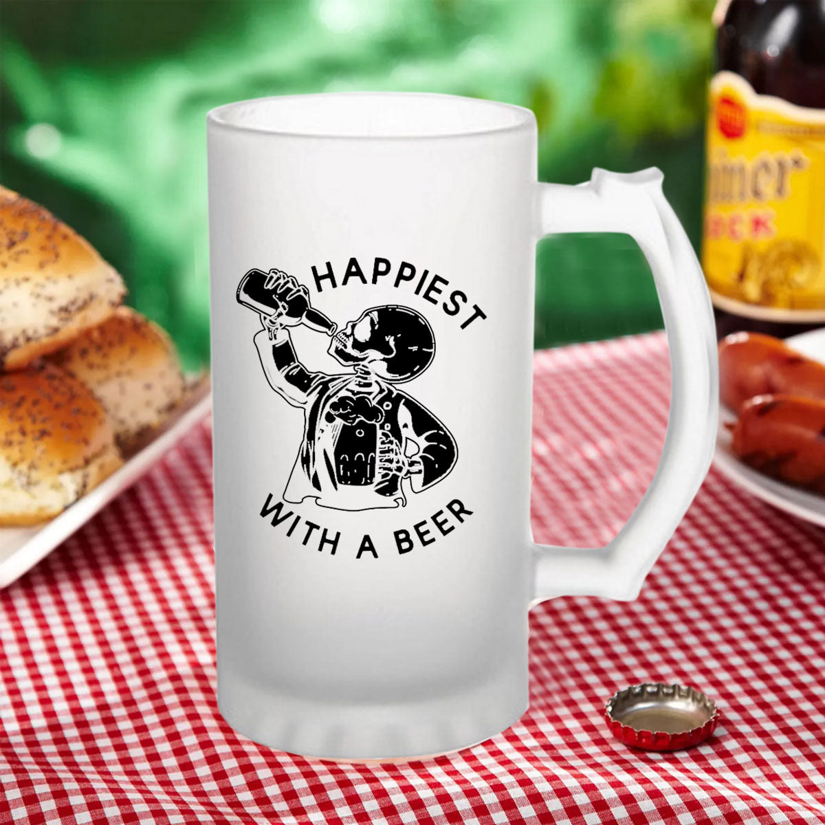 Happiest With a Beer 160z (470 ml) Frosted Beer Mug
