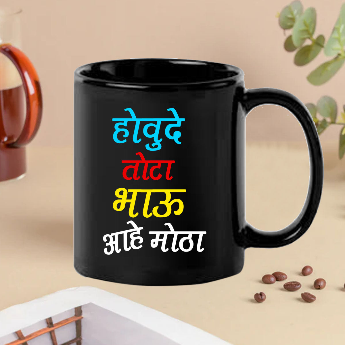 Houde Tota Bahu aahe Mota Black Mug
