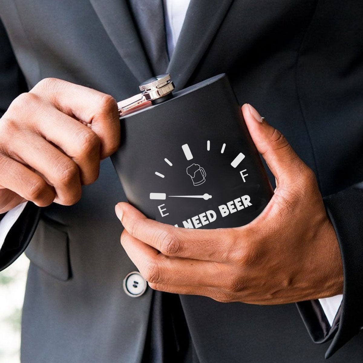 Stainless Steel Engraved Hip Flask Design - I need Beer