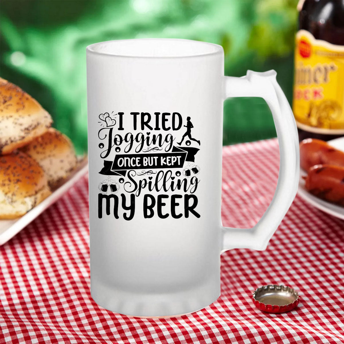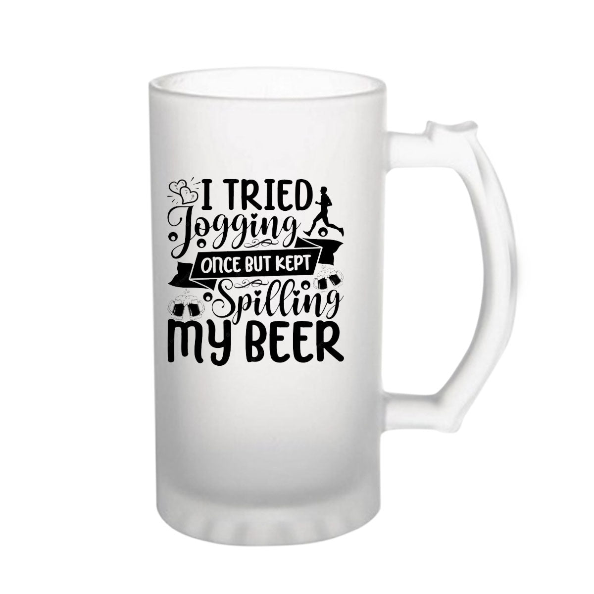 I Tried Jogging Once But Kept Spilling My Beer 160z (470 ml) Frosted Beer Mug