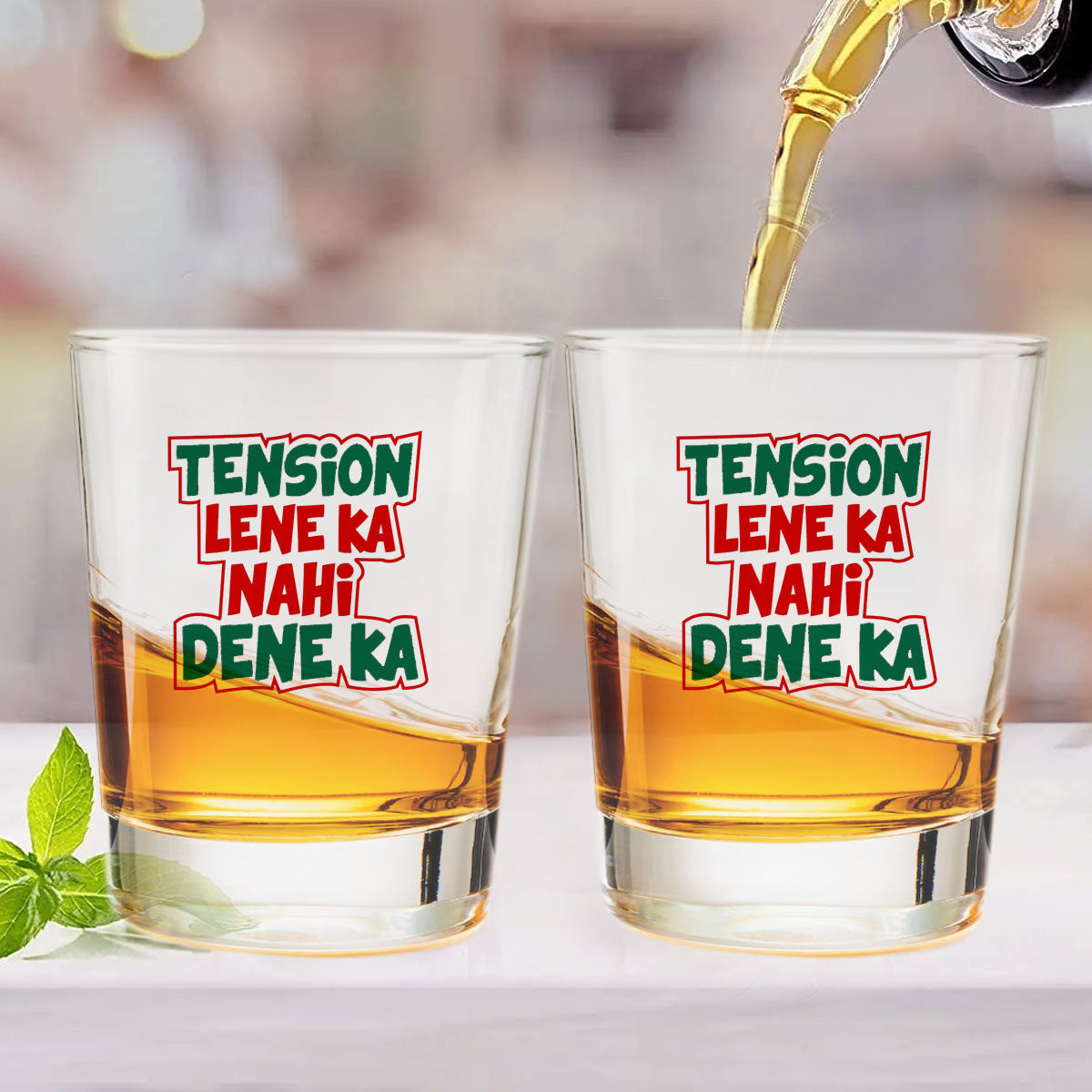 Chillaao - Shot Glass Clear - Set Of 2 Turn every party into a full-on vibe with this fun and quirky “Tension Lene Ka Nahi, Dene Ka” Inspired by Mumbai’s tapori style, this glass adds a desi swag to your drinking moments. Made from high-quality glass with a bold and eye-catching print, it’s perfect for house parties, celebrations, or gifting to friends who love masti and good times.