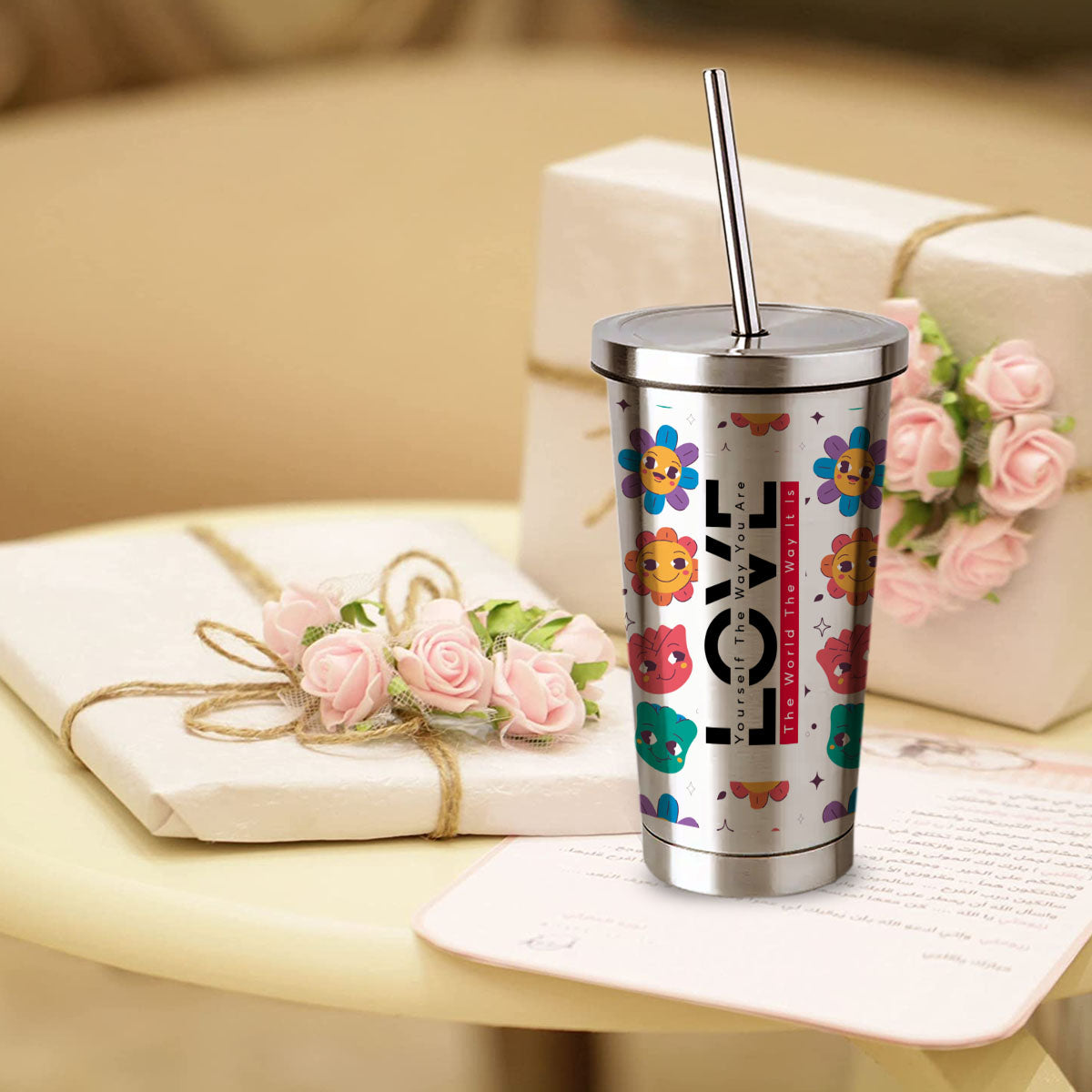 Love, Smiley pattern Stainless steel tumbler 470ml (16oz)