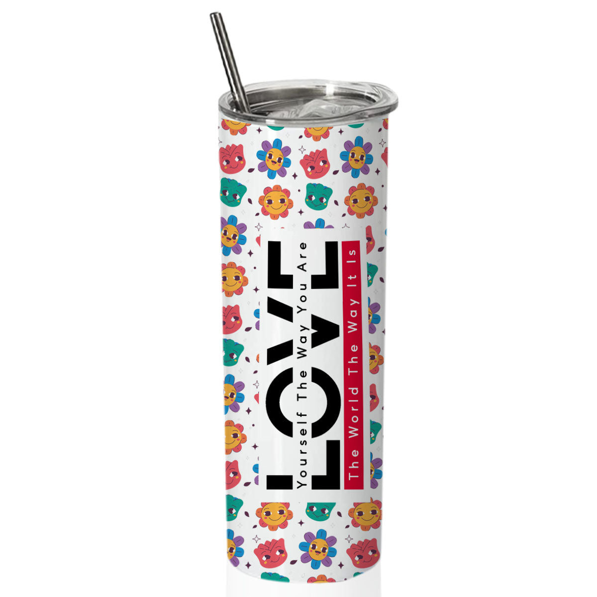 Love-SmileyPattern Doublewalled Steel White SkinnyTumbler 600ml