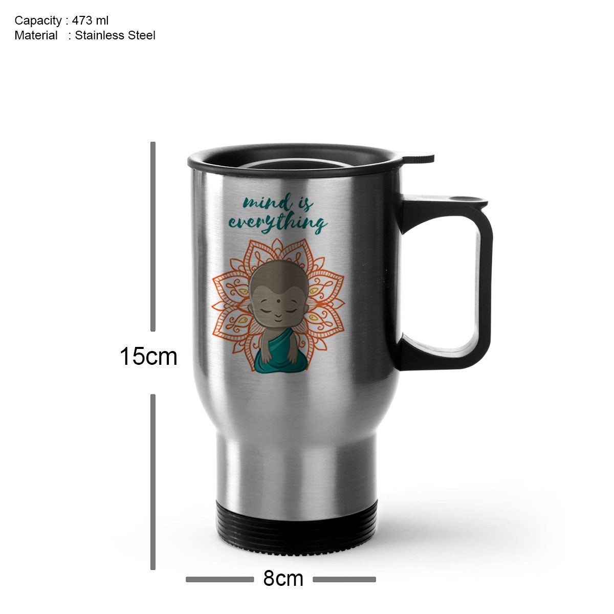 Mind Is Everything Silver Tavel Mug 470ml