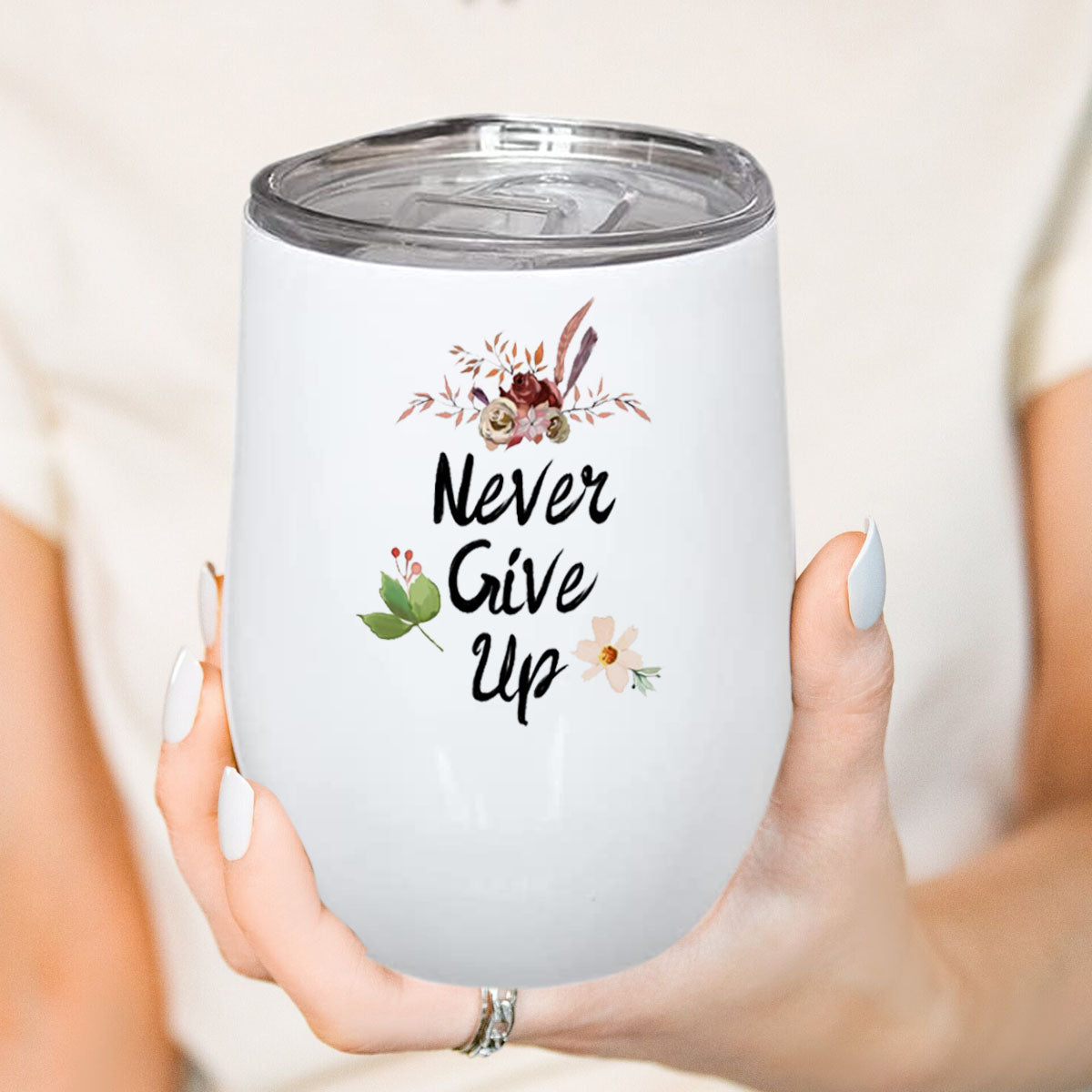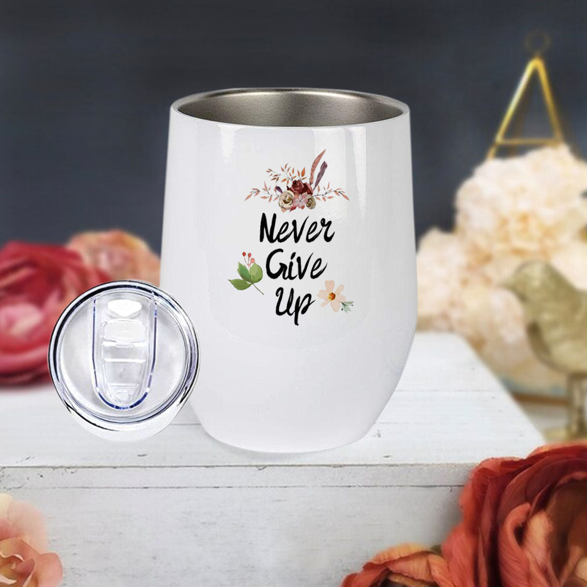 Never Give Up Stainless Steel Wine Mug 350ml(12oz)