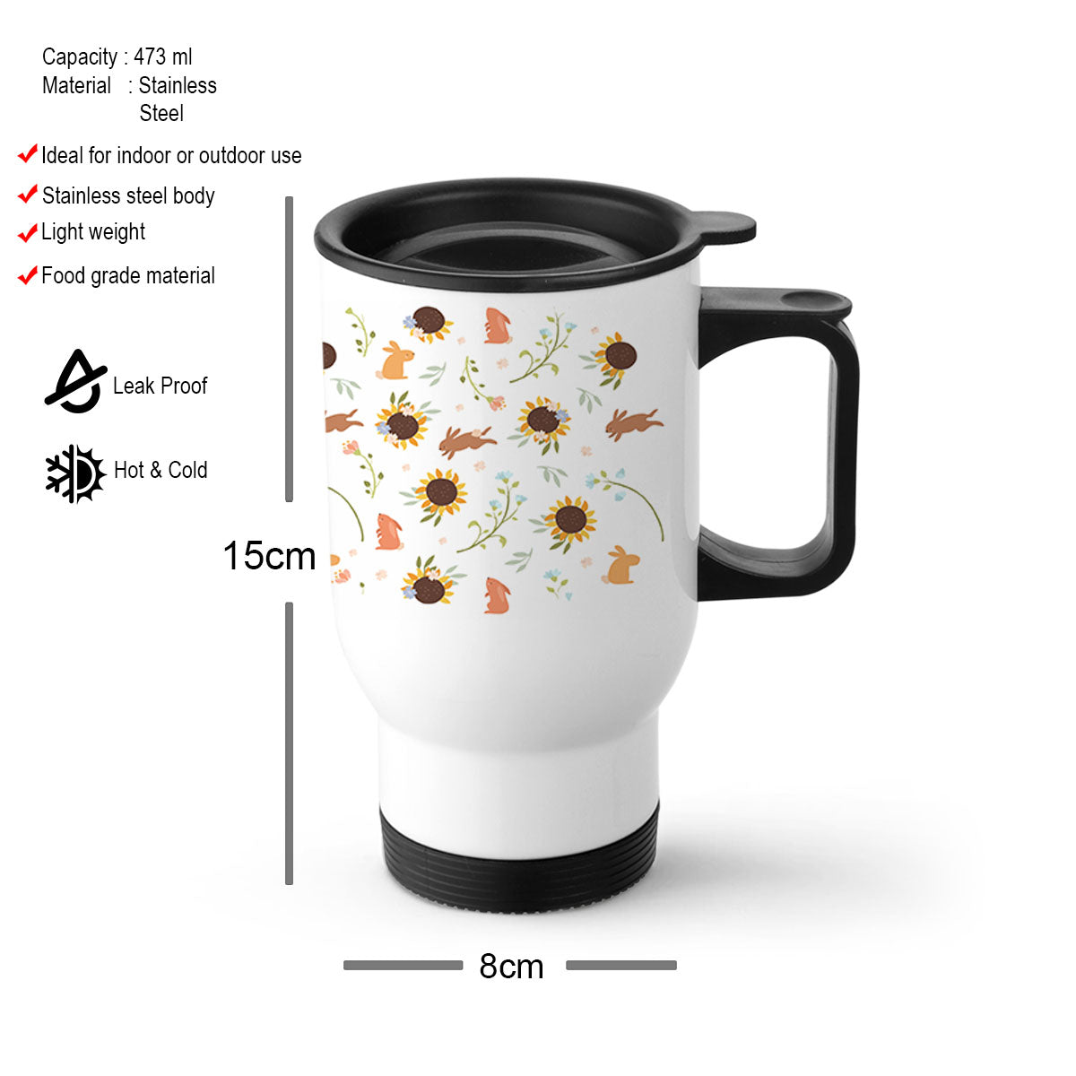 Chill-aao introduce you with an unique yet quite useful product, the Travel mug. Make your mornings brighter or charge yourself in the middle of a long day’s work. The handle provides the ultimate comfort to carry around freely. Fits directly into your car cup holder. Designed with double walled vacuum insulation for maximum temperature resistance. Smart grip-pad suction lid makes it a spill proof mug. The unique, quirky and funny prints guarantee to bring smile to your loved ones. Gift it to your friends, mom, dad, brother, sister, colleagues, cousins, boyfriend, girlfriend. 100% stainless steel yet light weight. Eco-friendly and are designed using the sublimation technology with the finest quality inks. The prints are scratch resistant and do not fade or come out with time and use. The product is printed against your order. The actual print may vary a bit.