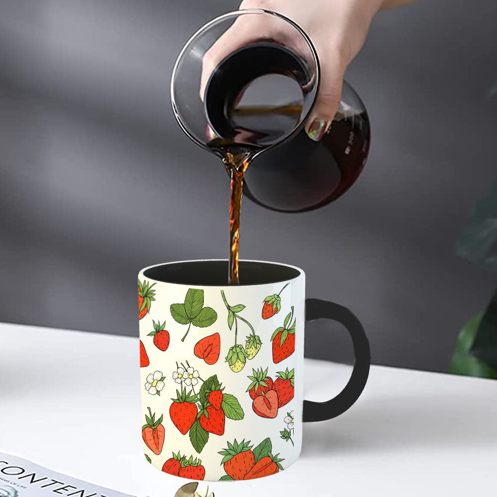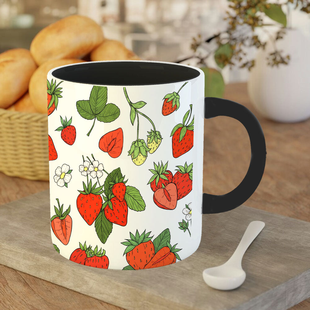 Chillaao Strawberry Pattern Inner Color Black Mug