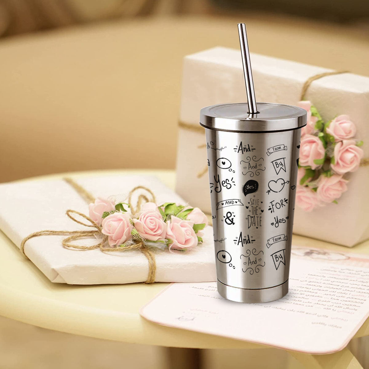 He stole her heart, now she's stealing his last name! You save the date, We'll save this moment for you with this adorable design. We at Chill-aao.com makes your life easy with our extremely stylish range of steel tumblers. Don’t have the time to sit and enjoy your favorite drink? Just carry it with you wherever you travel. Let’s make it a part of our modern lifestyle. Comes with a steel lid with straw hole and a steel straw to protect your drink from spilling and leaking. The unique, quirky and funny prints guarantee to bring smile to your loved ones. Gift it to your friends, mom, dad, brother, sister, colleagues, cousins, girlfriend, boyfriend. Caters to all the important occasions of your life like birthdays, anniversaries, special days like friendship day, mother’s day, father’s day, valentine’s day, also can be gifted as a return gift. The tumblers are made of good quality stainless steel and are designed using the sublimation technology with the finest quality ecofriendly inks. The prints are scratch resistant and do not fade or come out with time and use. The product is printed against your order. You get the 90% of what you see.