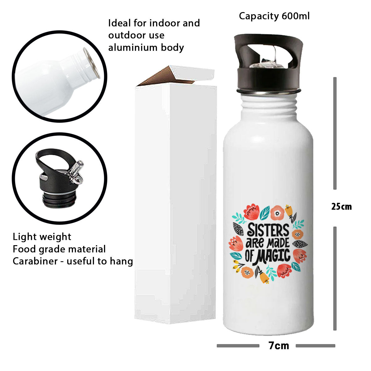 Sisters are Magic Single Walled Steel White Bottle with Sipper Lid 600ml