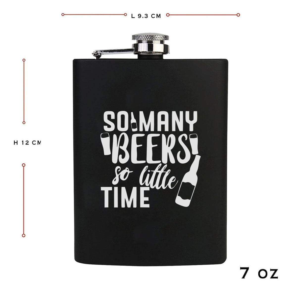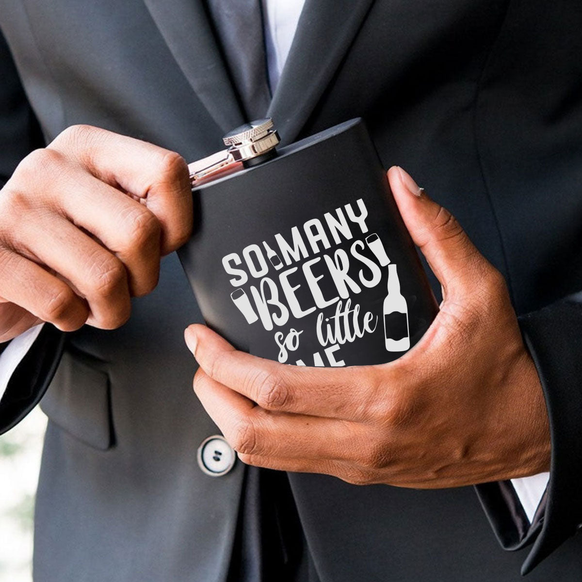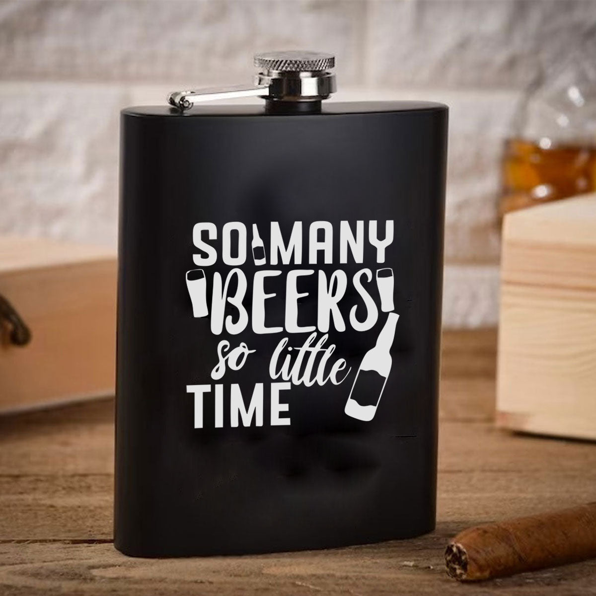 Stainless Steel Engraved Hip Flask Design - So Many Beers So Little Time