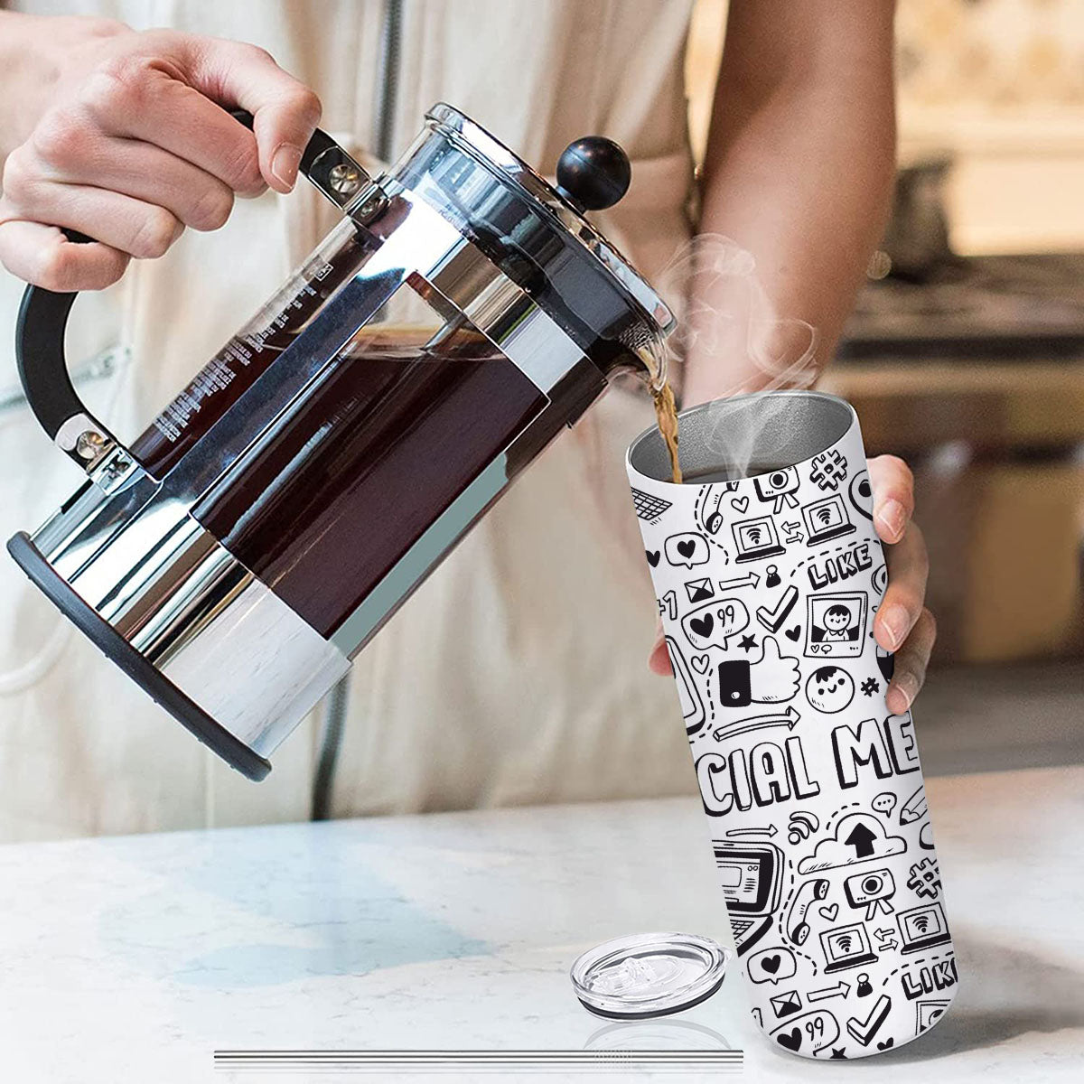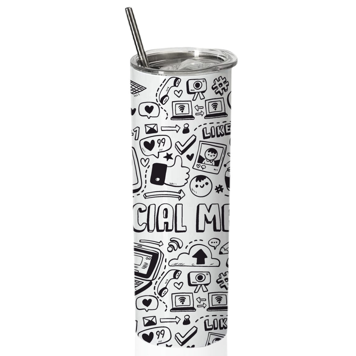 SocialMedia Doublewalled Steel White SkinnyTumbler 600ml