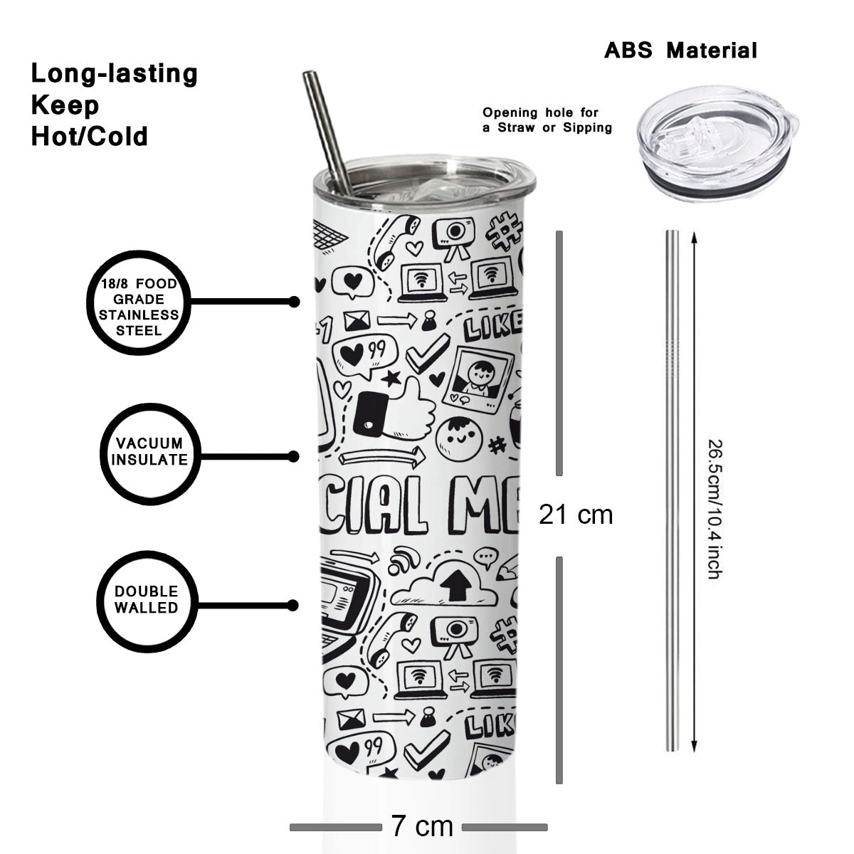 Unleash your style with our newly introduced Skinny tumbler. The sleek slim shape makes the bottle a star in itself. Double walled construction provides insulation to all your hot and cold liquids. The push on lid is attached by a rubber gasket making it both secure and easy to put on. Also allows you to sip directly or use the included steel straw accompanied by a straw cleaner. This tumbler is extremely versatile for any occasions and fits your interest. Use it to travel, to outdoor events and sports activities, personalize them for party favors and gifts, or just for everyday use. The unique, quirky and funny prints guarantee to bring smile to your loved ones. Gift it to your friends, mom, dad, brother, sister, colleagues, cousins, boyfriend, girlfriend. 100% stainless steel yet light weight. Eco-friendly and are designed using the sublimation technology with the finest quality inks. The prints are scratch resistant and do not fade or come out with time and use. The product is printed against your order. The actual print may vary a bit.