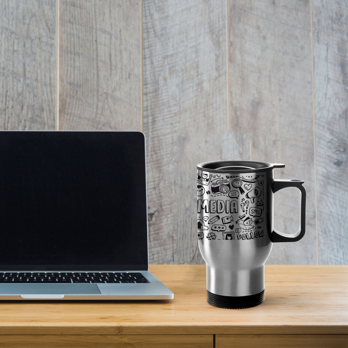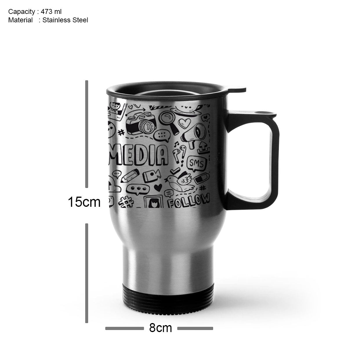Chill-aao introduce you with an unique yet quite useful product, the Travel mug. Make your mornings brighter or charge yourself in the middle of a long day’s work. The handle provides the ultimate comfort to carry around freely. Fits directly into your car cup holder. Designed with double walled vacuum insulation for maximum temperature resistance. Smart grip-pad suction lid makes it a spill proof mug. The unique, quirky and funny prints guarantee to bring smile to your loved ones. Gift it to your friends, mom, dad, brother, sister, colleagues, cousins, boyfriend, girlfriend. 100% stainless steel yet light weight. Eco-friendly and are designed using the sublimation technology with the finest quality inks. The prints are scratch resistant and do not fade or come out with time and use. The product is printed against your order. The actual print may vary a bit.