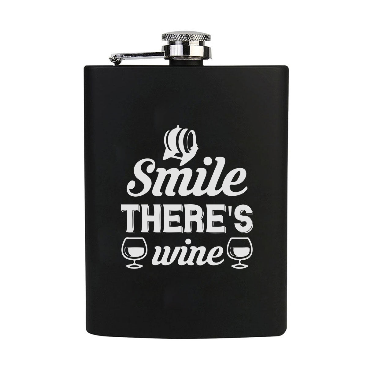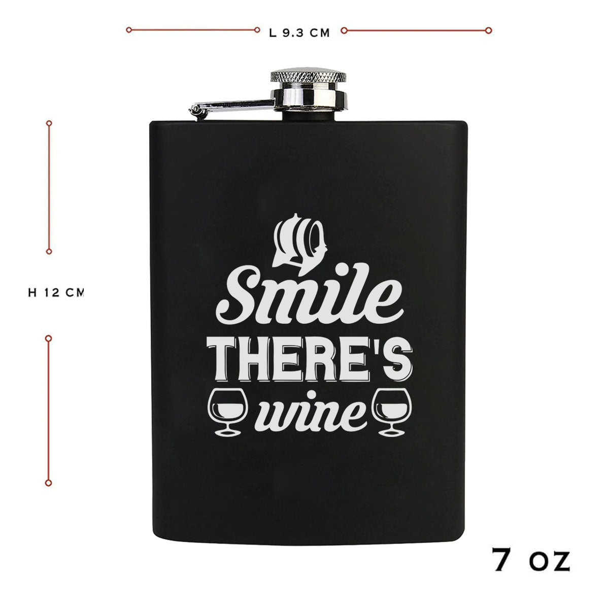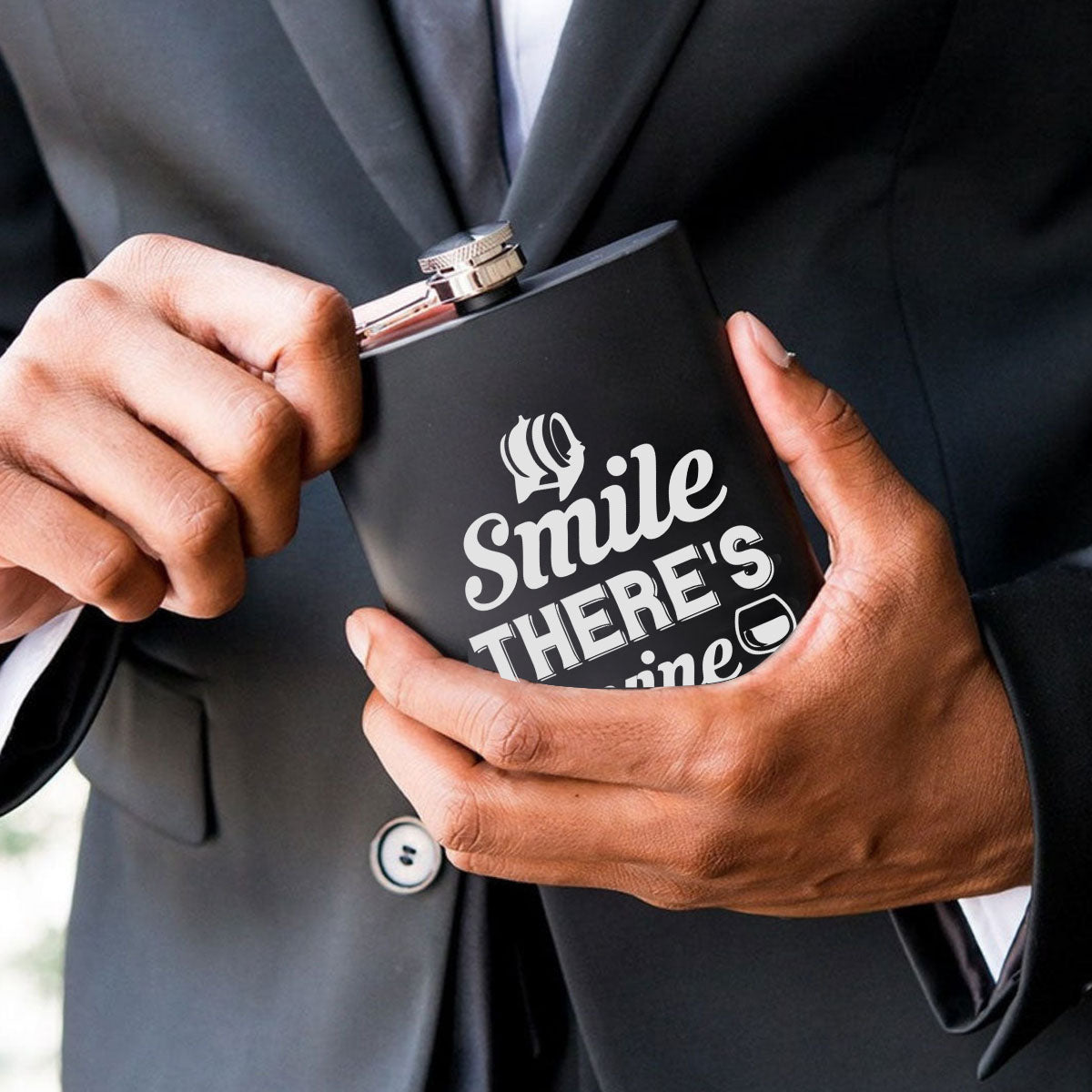 Stainless Steel Engraved Hip Flask Design - Smile There's Wine