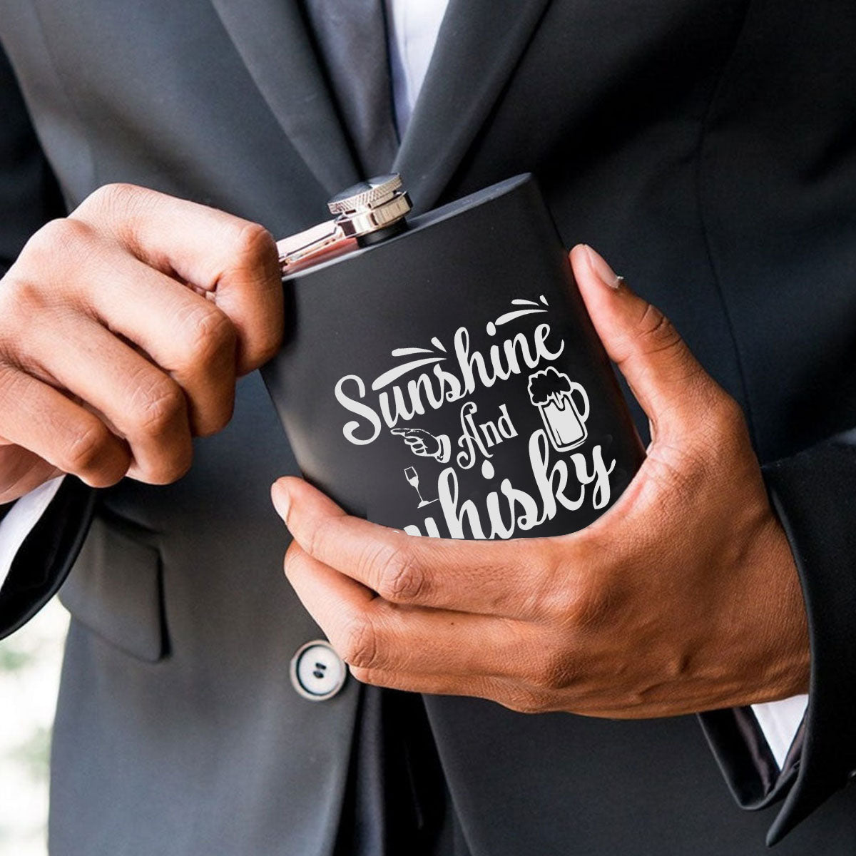 Stainless Steel Engraved Hip Flask Design - Sunshine And Wine