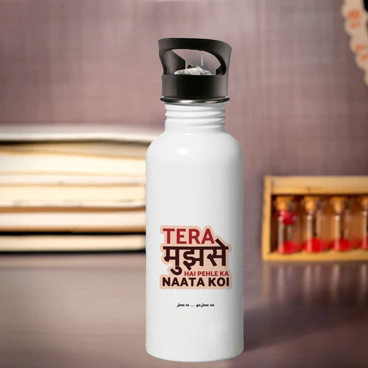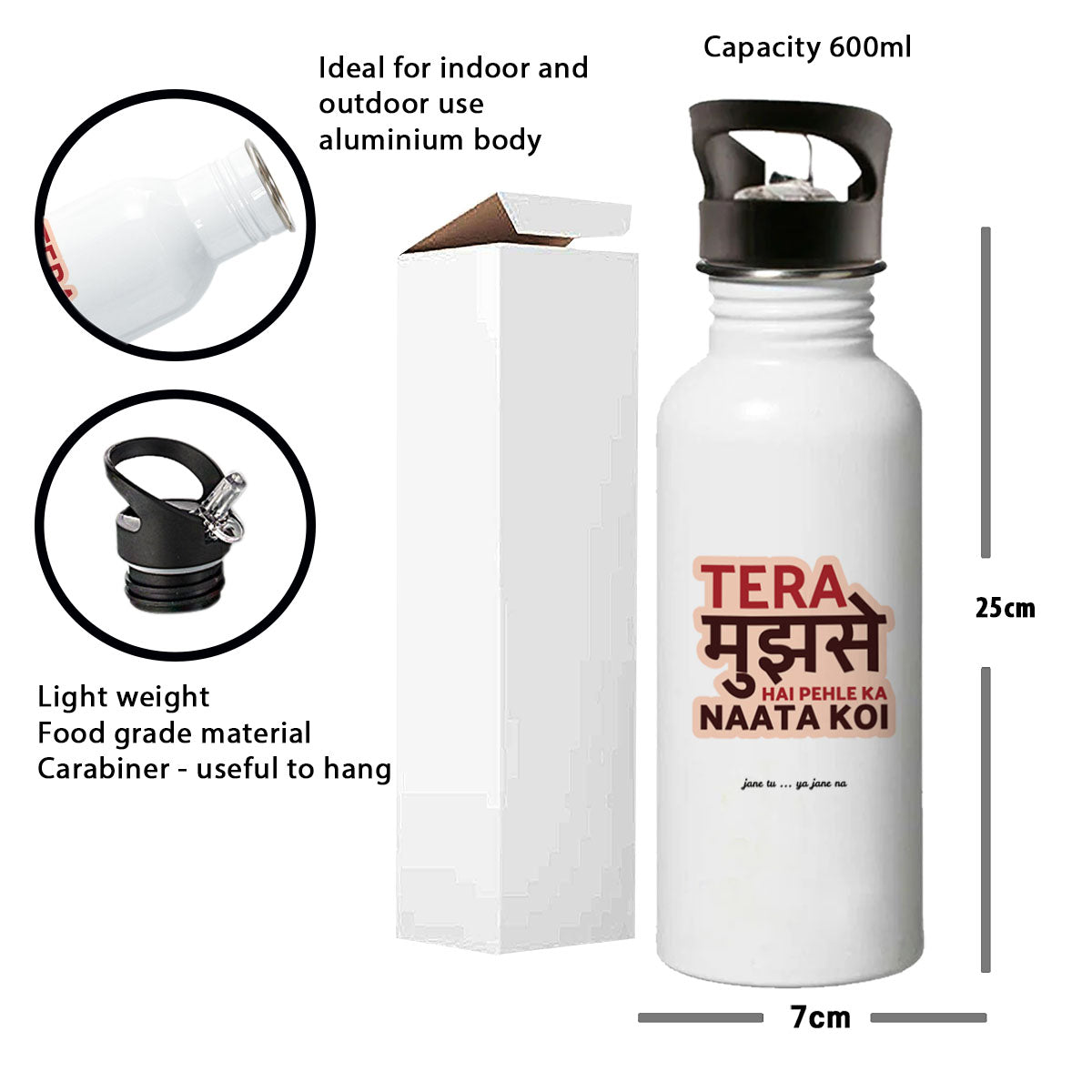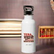 TeraMujhseHai Single Walled Steel White Bottle with Sipper Lid 600ml