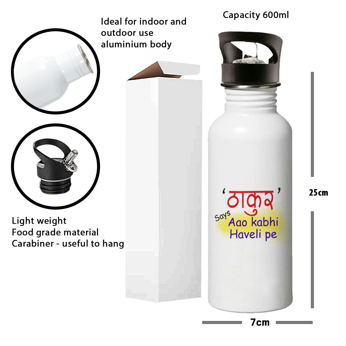 Thakur-AoaKabhiHaveliPar Single Walled Steel White Bottle with Sipper Lid 600ml