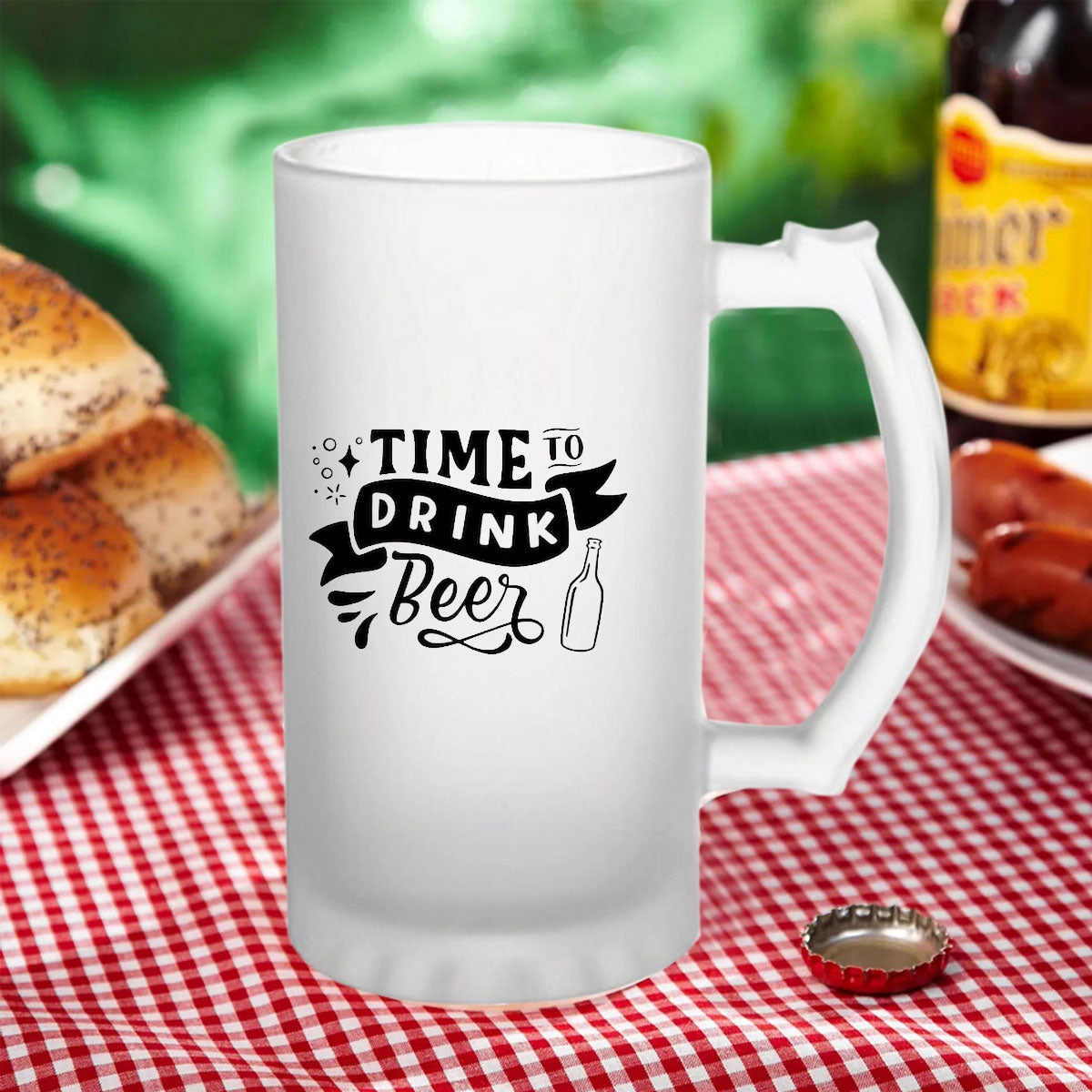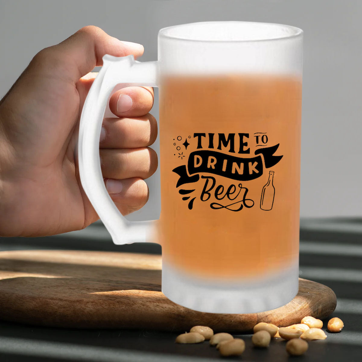 Time To Drink Beer 160z (470 ml) Frosted Beer Mug