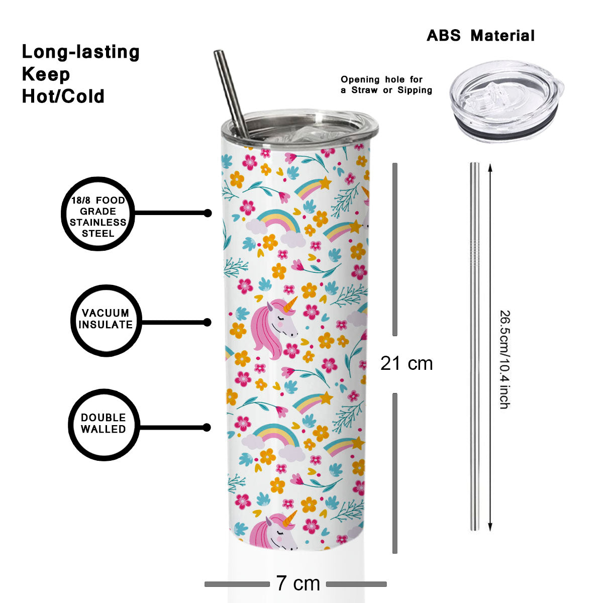 Unleash your style with our newly introduced Skinny tumbler. The sleek slim shape makes the bottle a star in itself. Double walled construction provides insulation to all your hot and cold liquids. The push on lid is attached by a rubber gasket making it both secure and easy to put on. Also allows you to sip directly or use the included steel straw accompanied by a straw cleaner. This tumbler is extremely versatile for any occasions and fits your interest. Use it to travel, to outdoor events and sports activities, personalize them for party favors and gifts, or just for everyday use. The unique, quirky and funny prints guarantee to bring smile to your loved ones. Gift it to your friends, mom, dad, brother, sister, colleagues, cousins, boyfriend, girlfriend. 100% stainless steel yet light weight. Eco-friendly and are designed using the sublimation technology with the finest quality inks. The prints are scratch resistant and do not fade or come out with time and use. The product is printed against your order. The actual print may vary a bit.