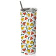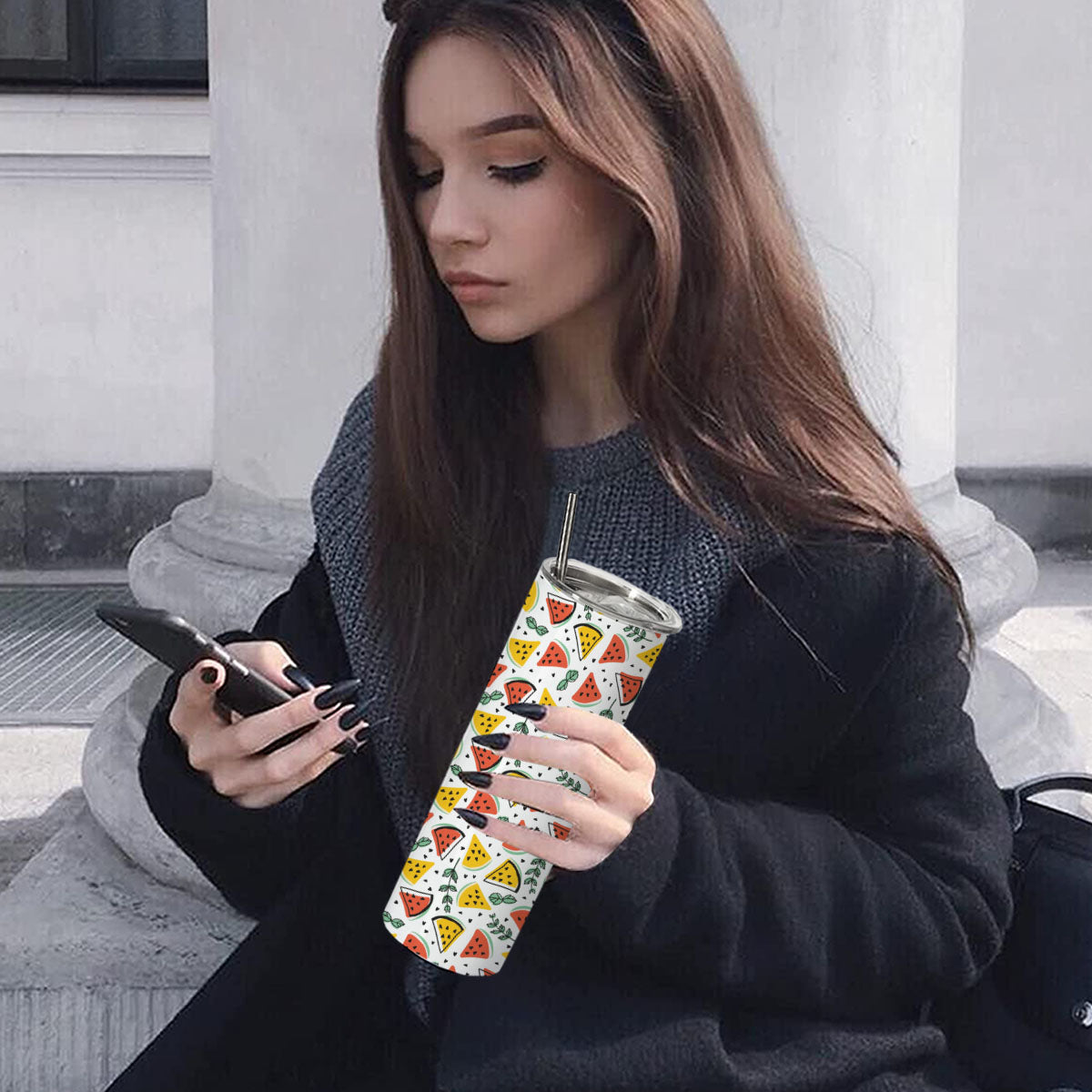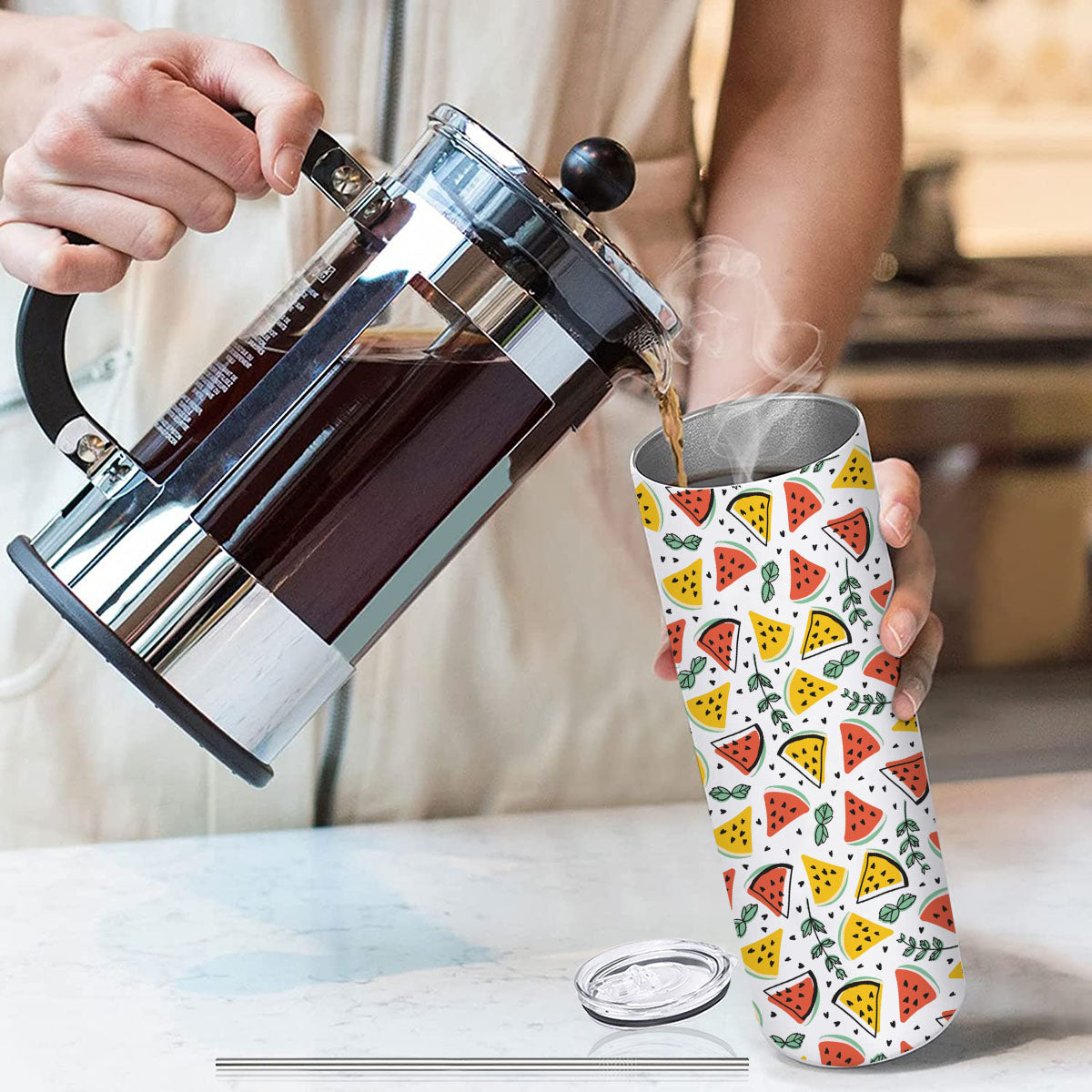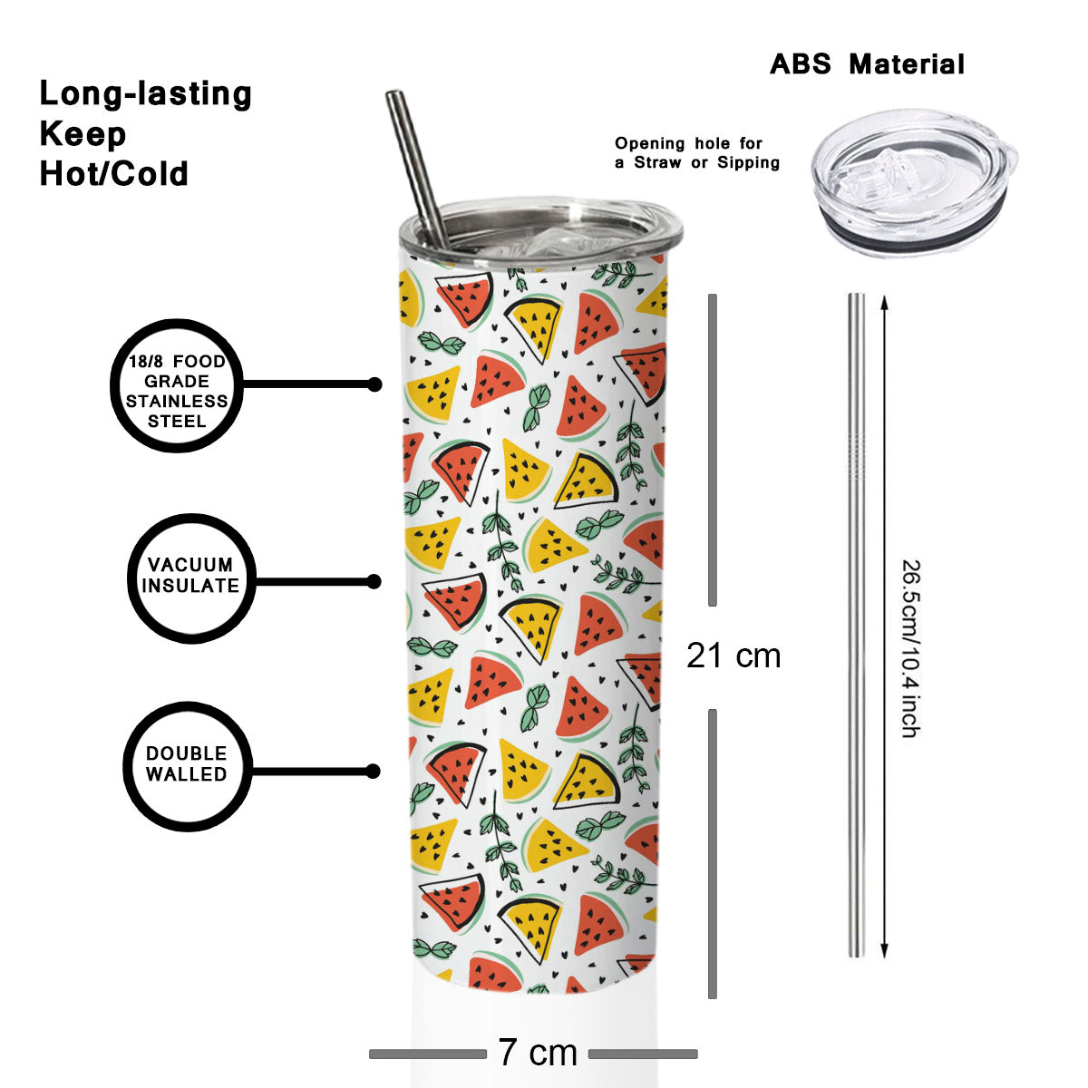 Watermelon Pattern Double Walled Steel White Skinny Tumbler 600ml