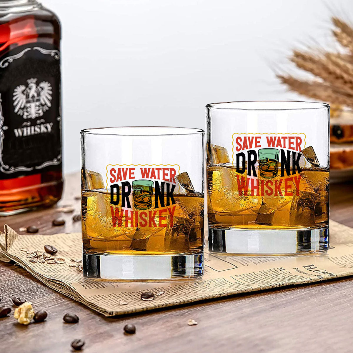 Whiskey Glasses with Design - Save The Water Drink Whiskey