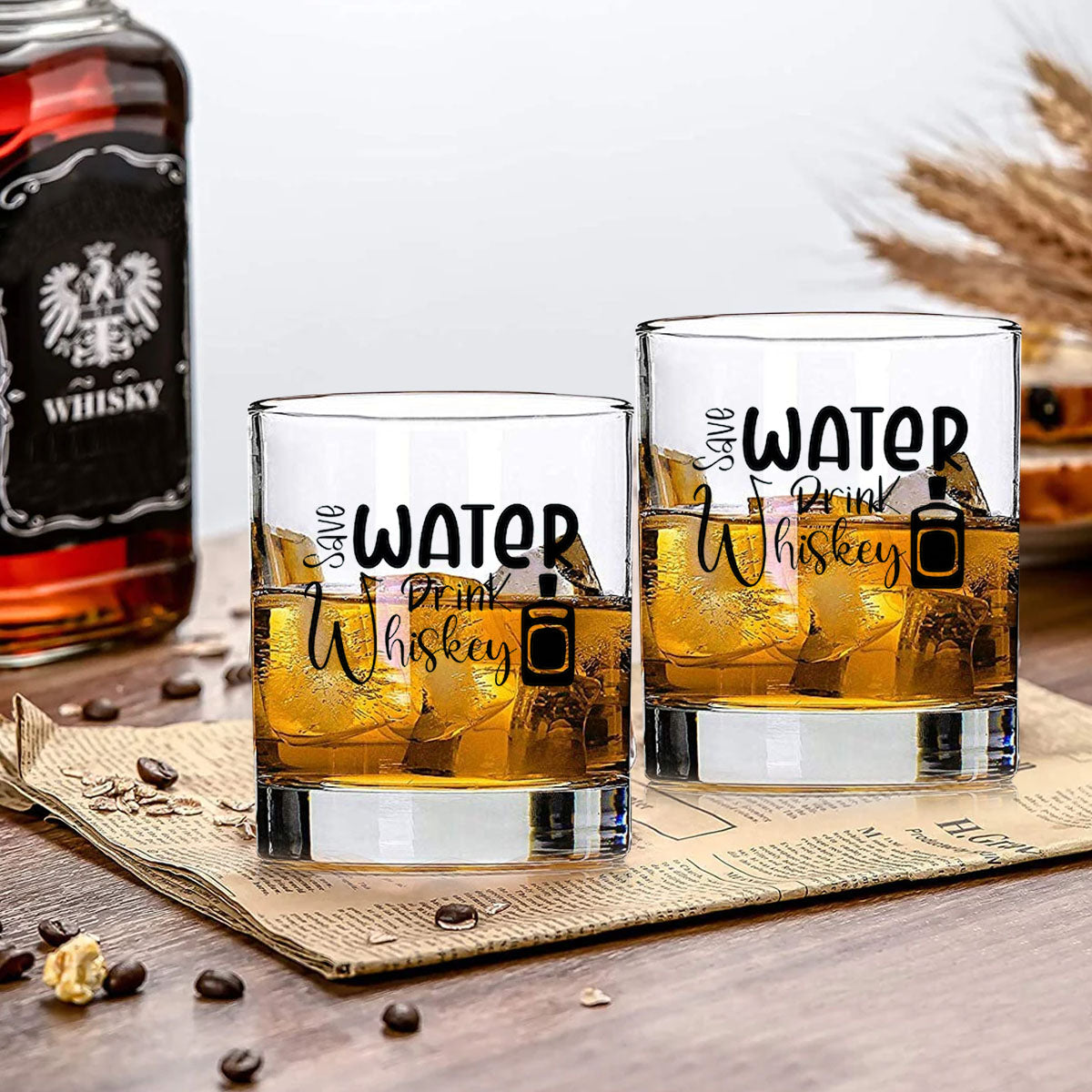Whiskey Glasses with Design - Save Water Drink Whiskey
