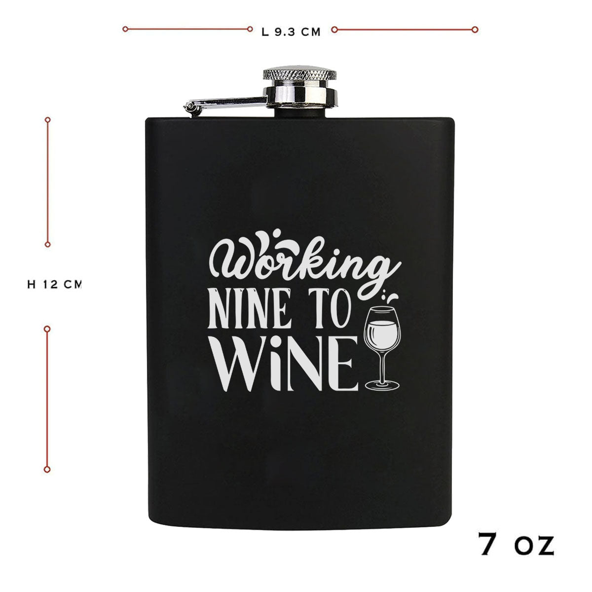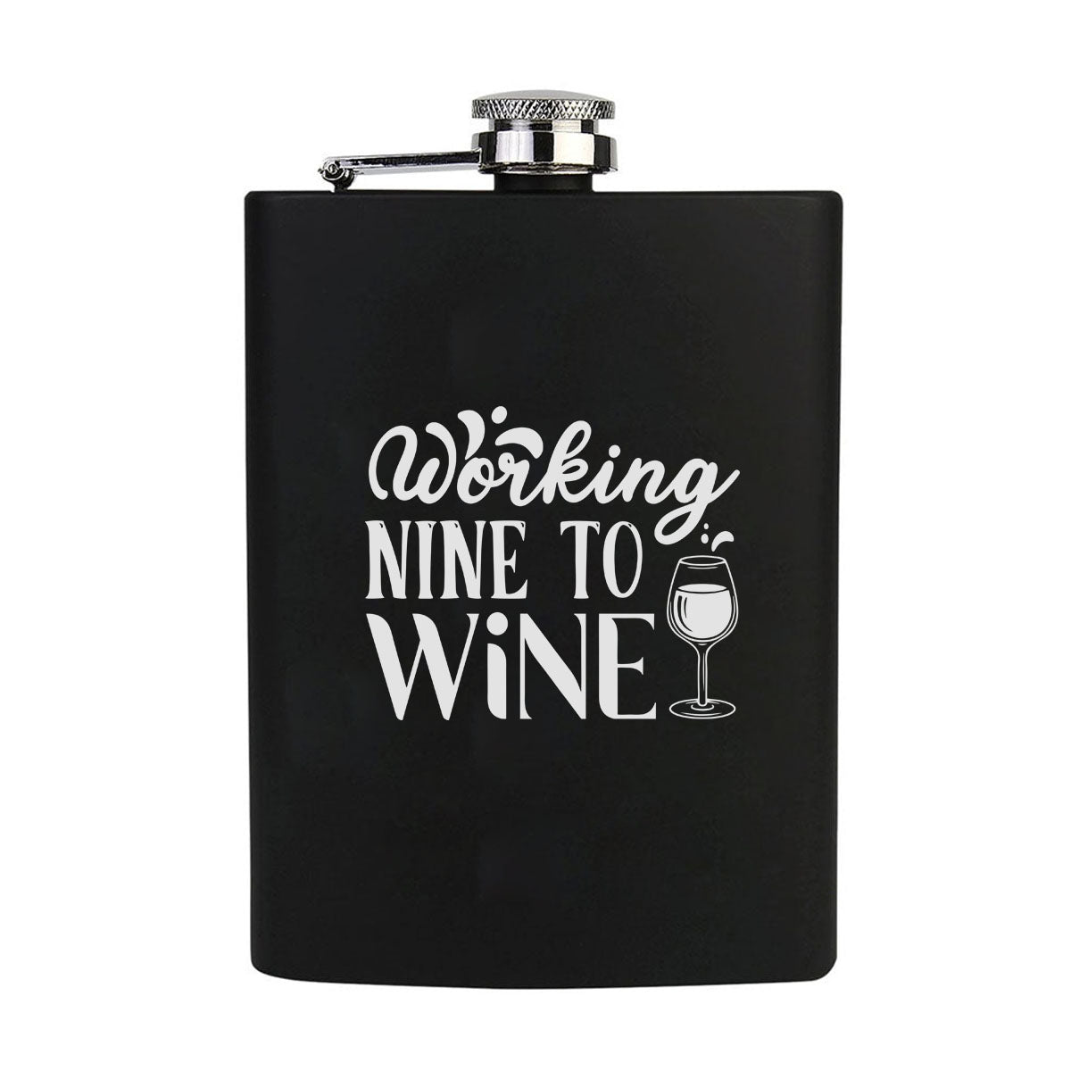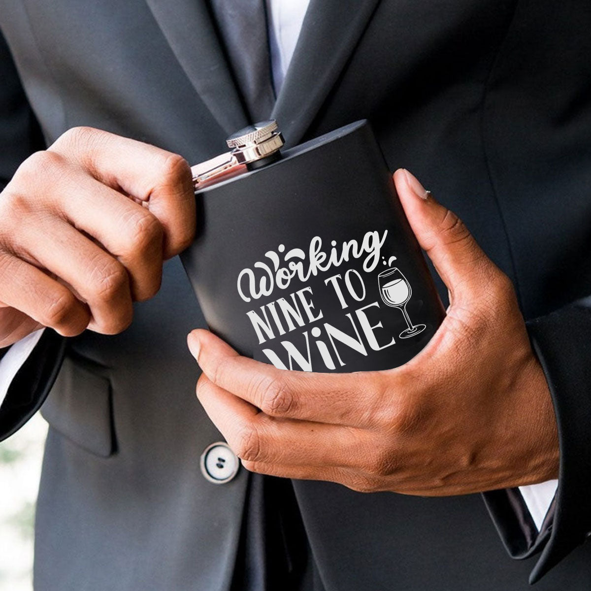 Stainless Steel Engraved Hip Flask Design - Working Nine to Wine